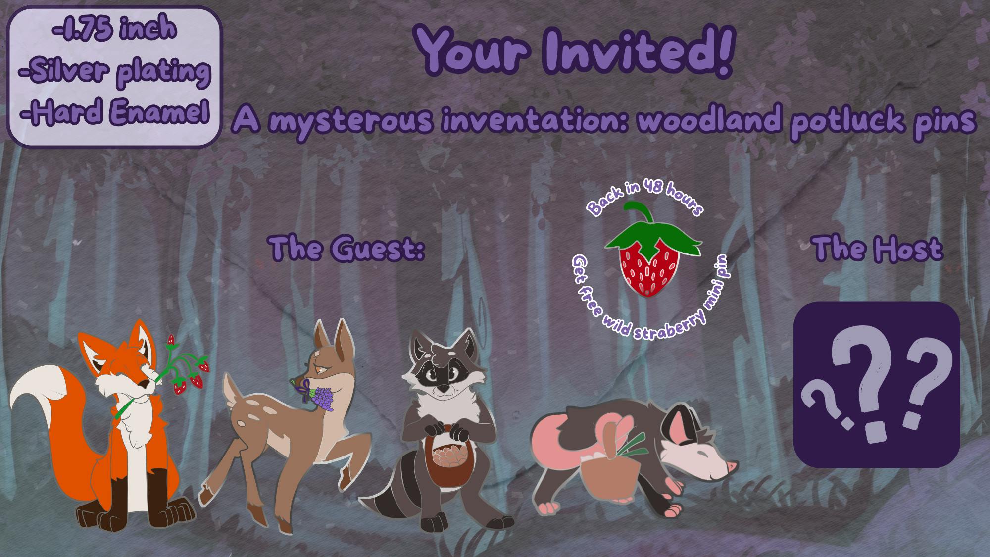 Hello All! Im so excited to announce that we have joined Beast And Botanicals event collab! I love lil woodland critters the idea of foraging for food and wanted to celebrate them both with some pin. Woodlands potluck will feature pins of a fox, opossum, raccoon and deer bringing foraged plants to a potluck hosted by a mysterious host! For total pins in the line up i have