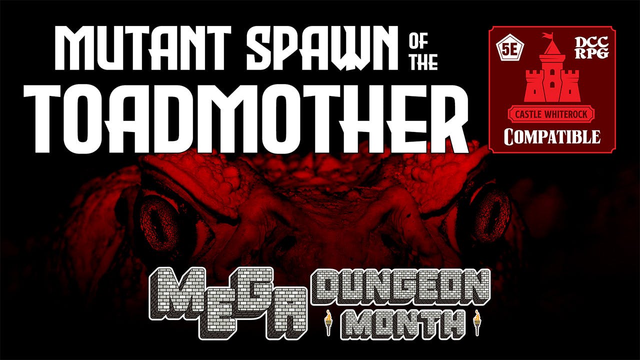 Mutant Spawn of the Toadmother is a 1st-level 5E adventure and DCC RPG 0-level funnel that can stand alone, or serve as a gruesome introduction to the Castle Whiterock mega-dungeon. Goodman Games generously reached out to those of us active in the third-party publishing world to ask whether we would be interested in producing materials to support their Castle Whiterock campaign.