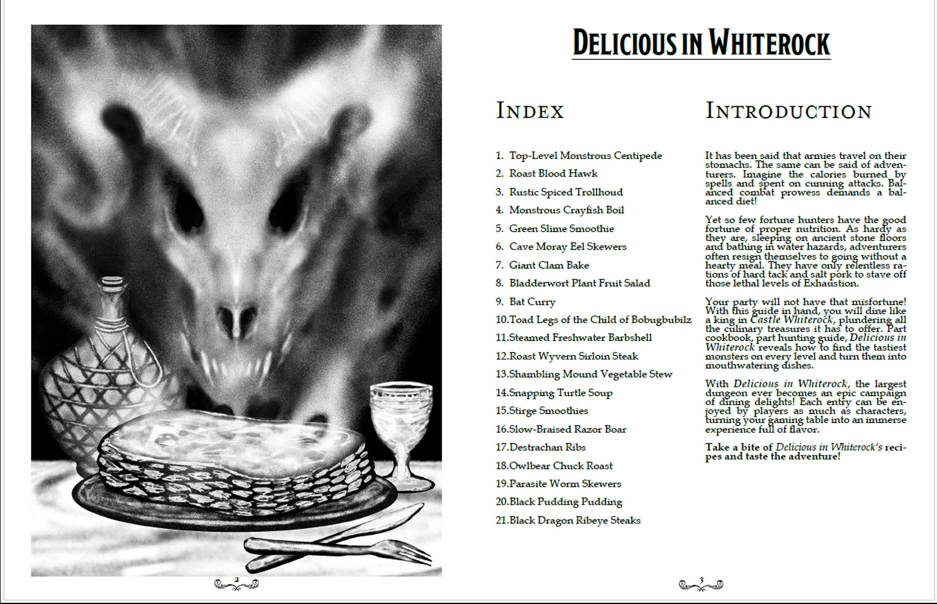 With this $5 Reservation, you get Delicious in Whiterock for FREE when you pledge ANY print-level of Descent of the Ancient Fane! Your $5 fee is applied to your pledge, and you get this 30+ page glossy booklet AND the PDF!