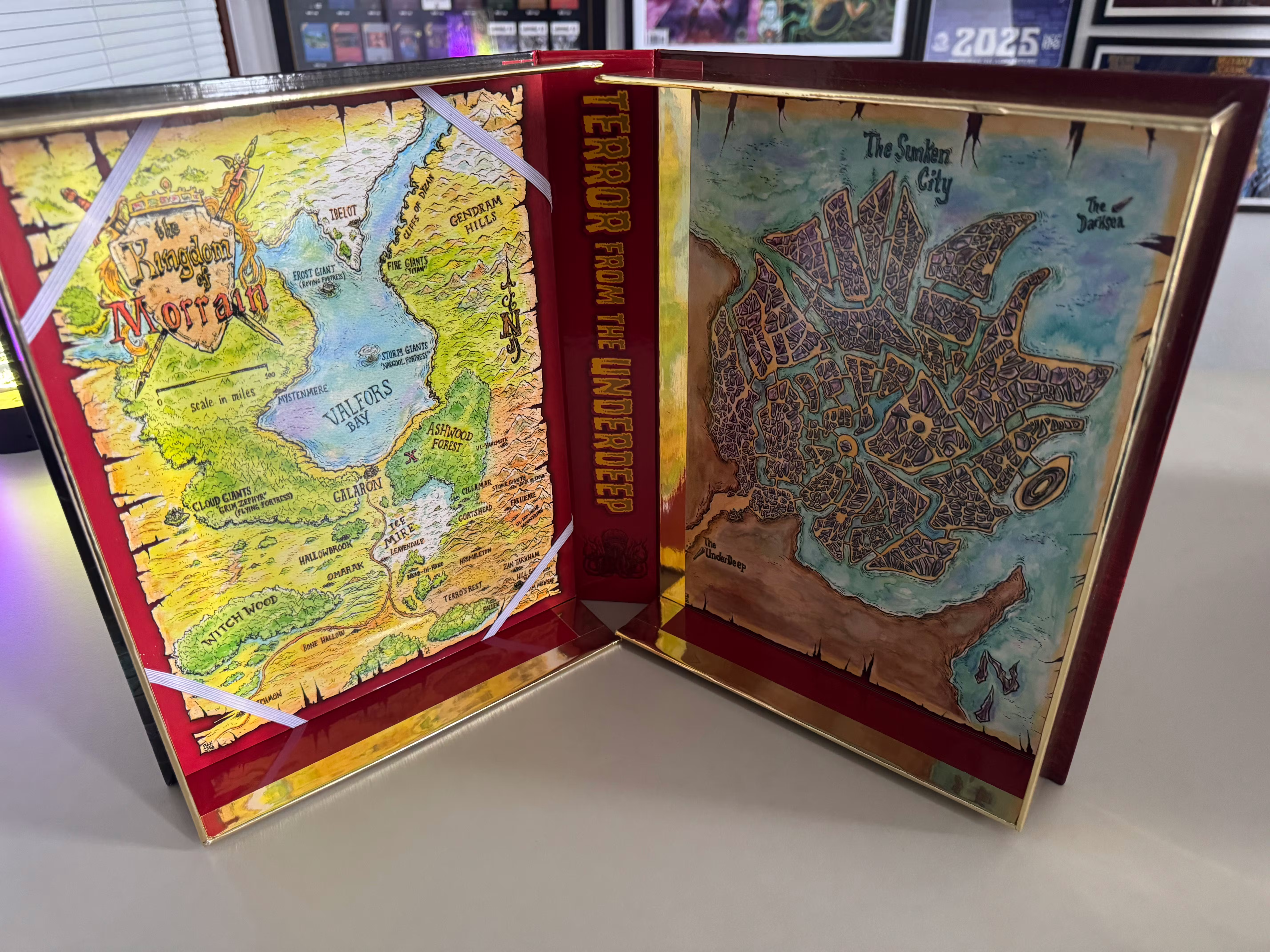 This is what a clamshell box looks like when stood upright. It can double as a GM screen!