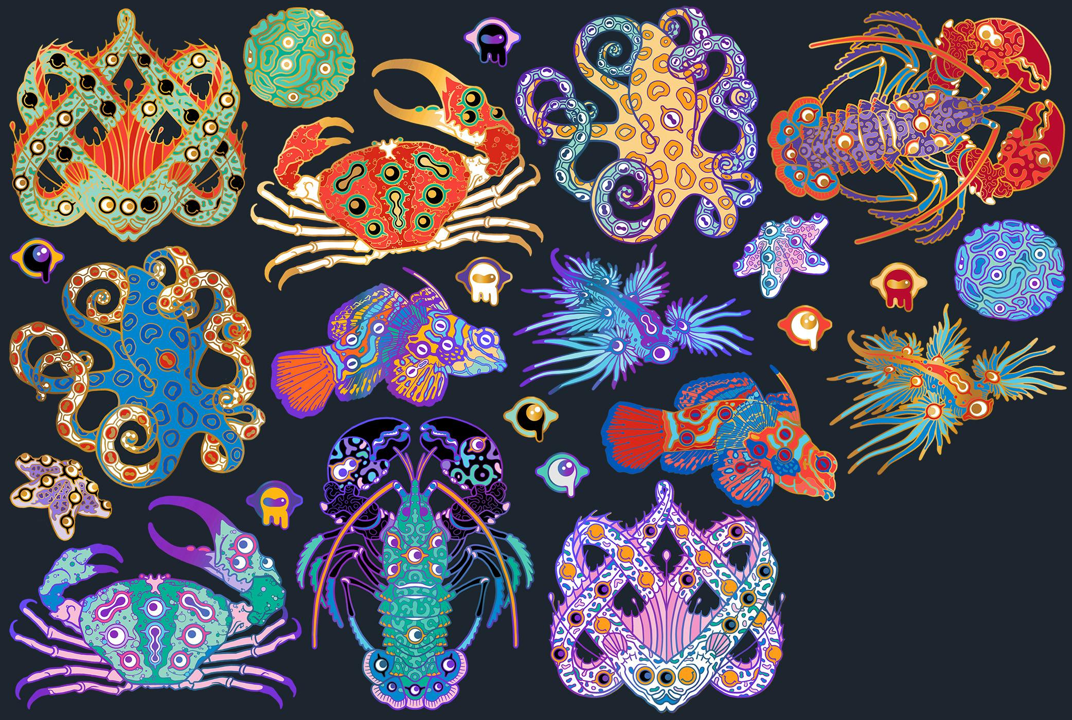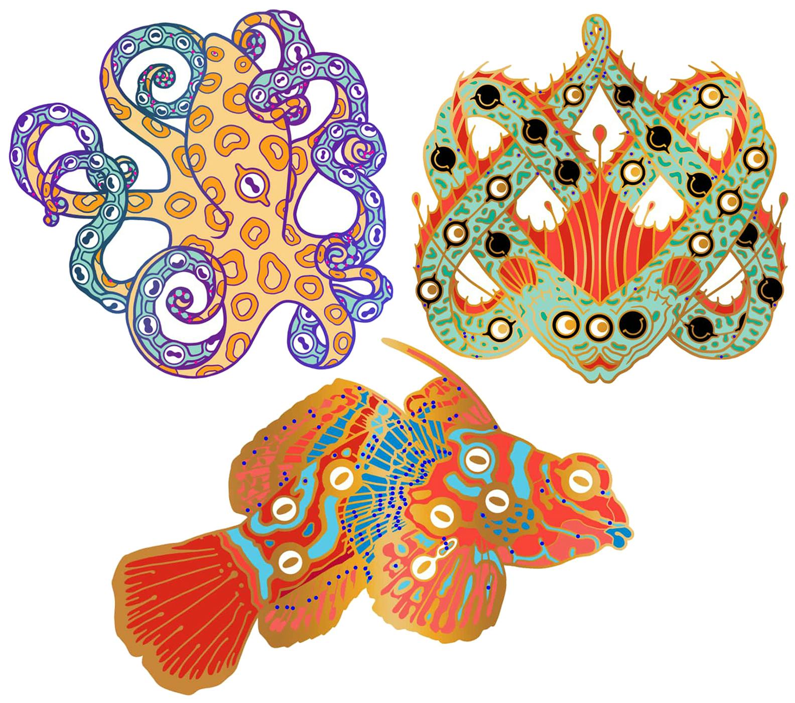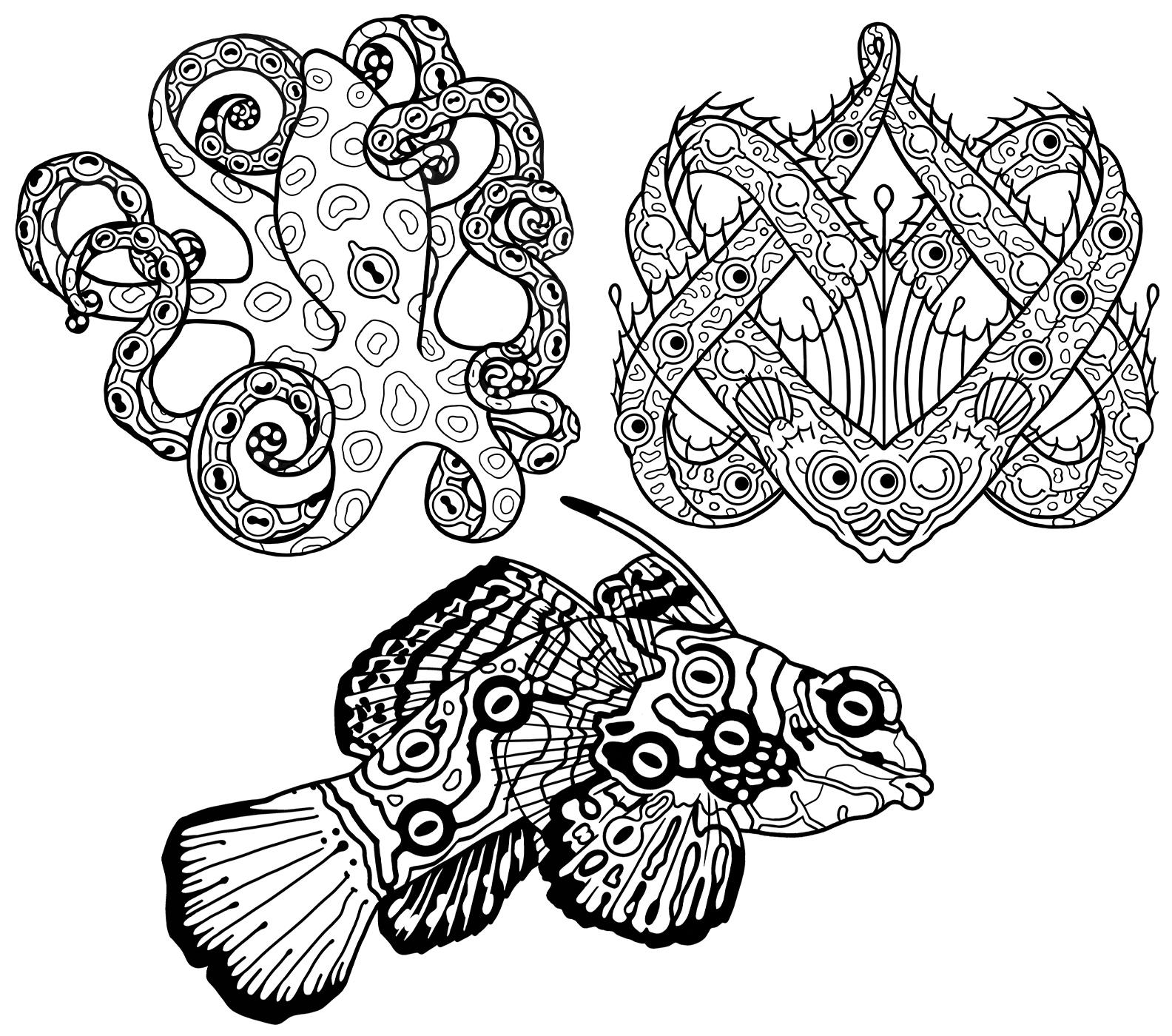 The only noticeable change really is that I had to redraw the Mandarinfish's translucent fin to have less lines, but I don't think it effects the design much.