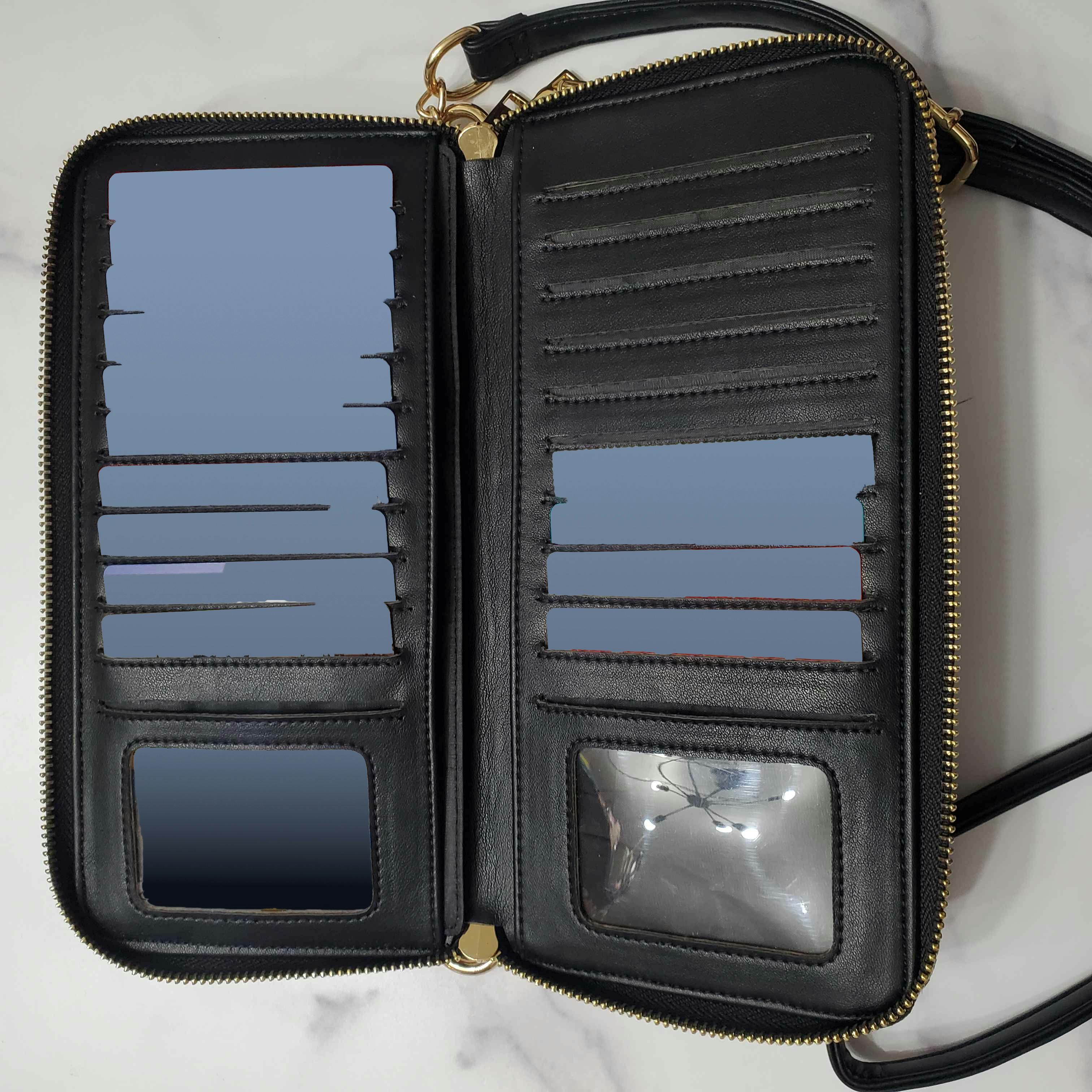 lastly here is an example of the new straps. we will also still have the wristlet that will come with each wallet. i originally wanted the full chain strap but they also sent this hybrid chain strap that has a softer faux leather for the shoulder area. i will see if i can provide both as options ! which one would you prefer ?