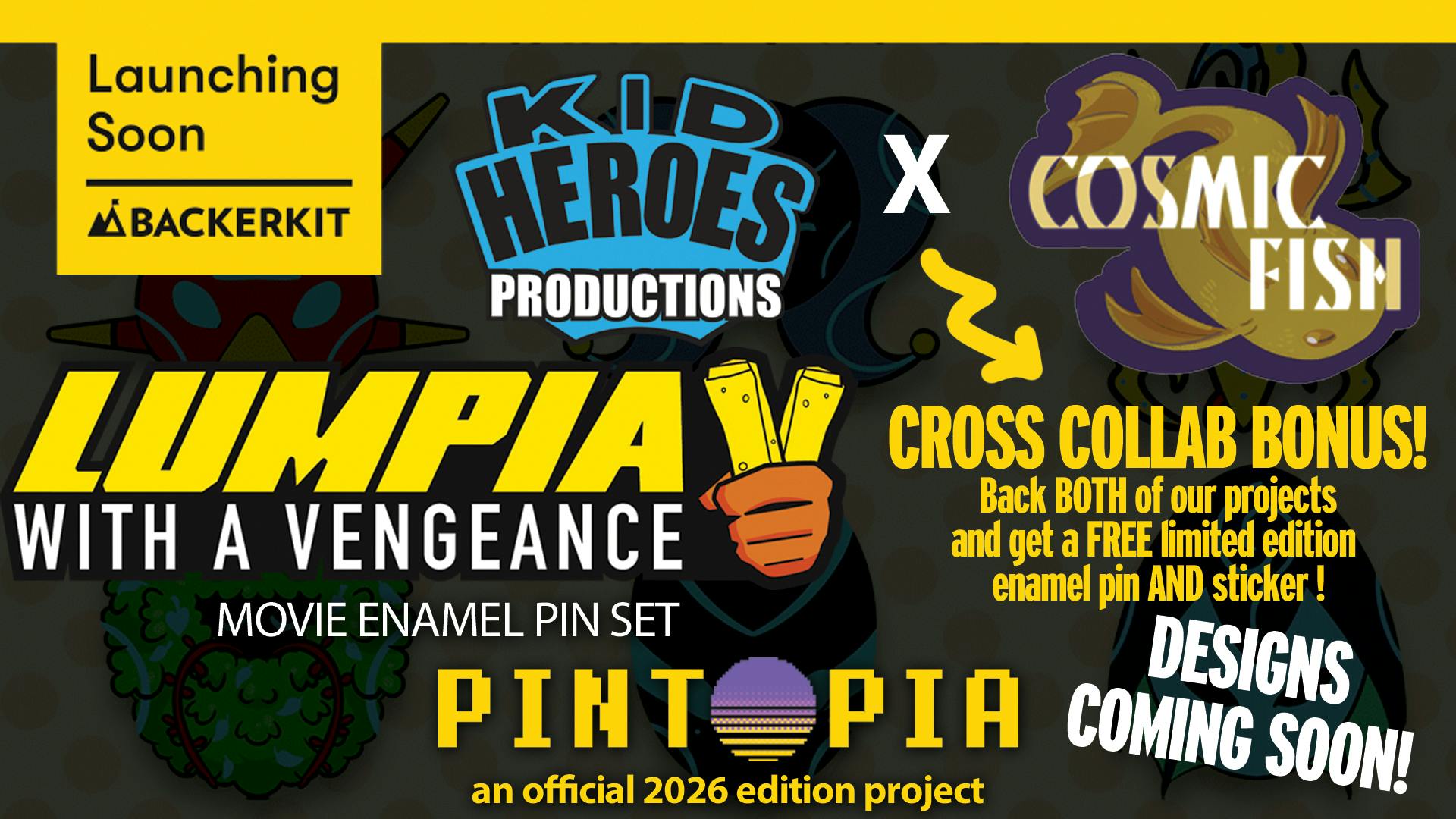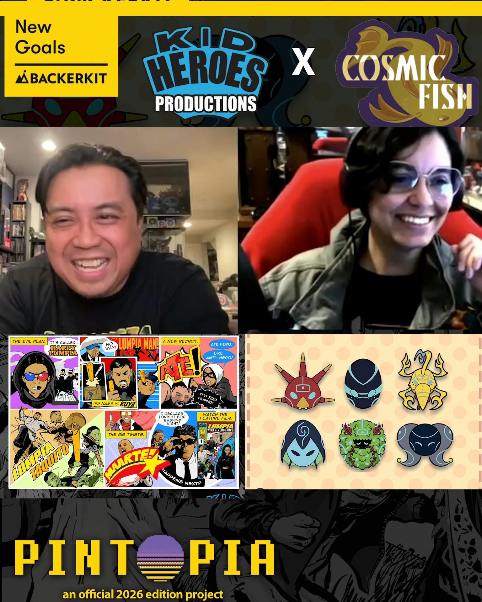 Proud to be teaming up with COSMIC FISH for this exclusive PINTOPIA campaign! Get a BONUS exclusive sticker sheet AND enamel pin (both designed by Eliana Falcón) by backing both our campaigns! https://lovethatlumpia.com/pins