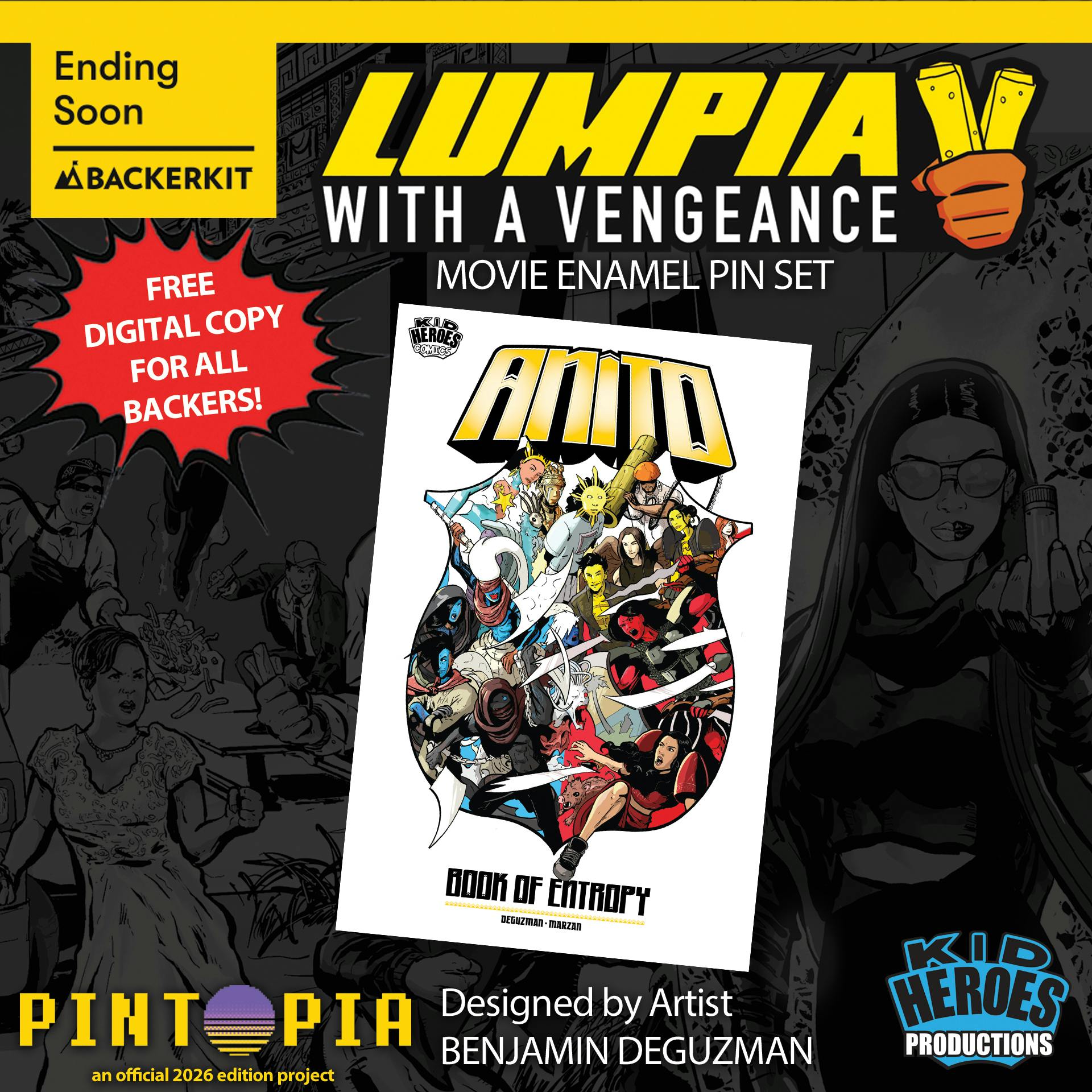 During our livestream with artist BENJAMIN DEGUZMAN (Ned's Lola), we announced our newest comic book- ANITO: BOOK OF ENTROPY! And EVERY backer of this LUMPIA WITH A VENGEANCE Pin Campaign GETS A FREE DIGITAL COPY of ISSUE 1 🎉🎉🎉