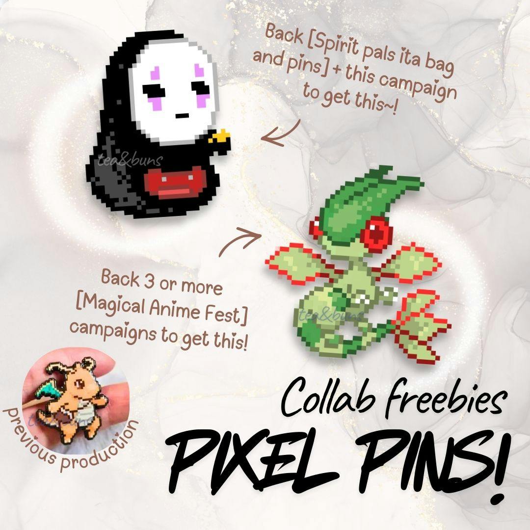 Thank you everyone who has shown interest in the campaign so far, and thank you for voting on my poll! Flygon has made it in as a freebie for everyone who backs this campaign + two other Anime themed campaigns under the same banner :) We also have No Face as a reward for backing us + [Spirit Pals Ita Bag and Pins]!