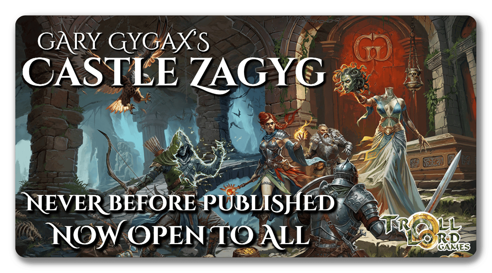 Support 2 or more projects from Goodman Games, Monte Cook Games, Kobold Press, Ghostfire Gaming, Loke Battle Mats, Rowan, Rook and Decard, or Troll Lord Games and you'll unlock the MEGA-Exclusive Reward: Each publisher will conjure up 3–4 pages of monsters, traps, treasures, and twists, then mash them together into one massive bonus PDF. It’s gonna be weird, a little wild, but only available to Mega Dungeon Month backers.