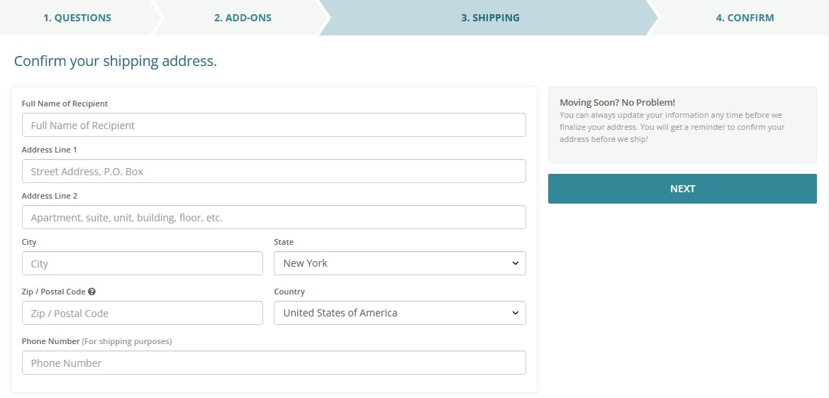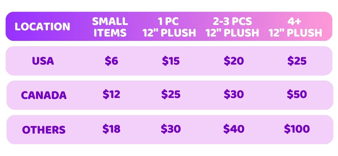 Step 4 - Enter your shipping address and confirm. Shipping fee will depend on your location and whether your order includes a large 12" plush.