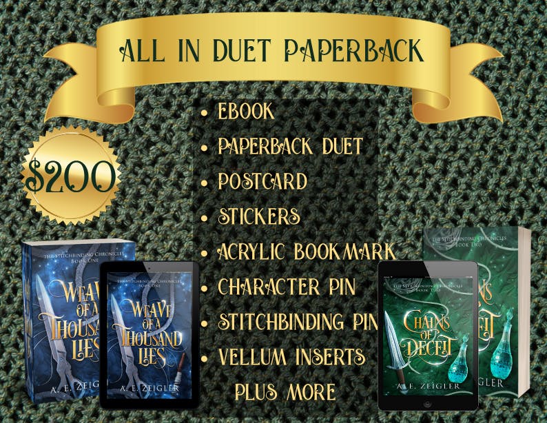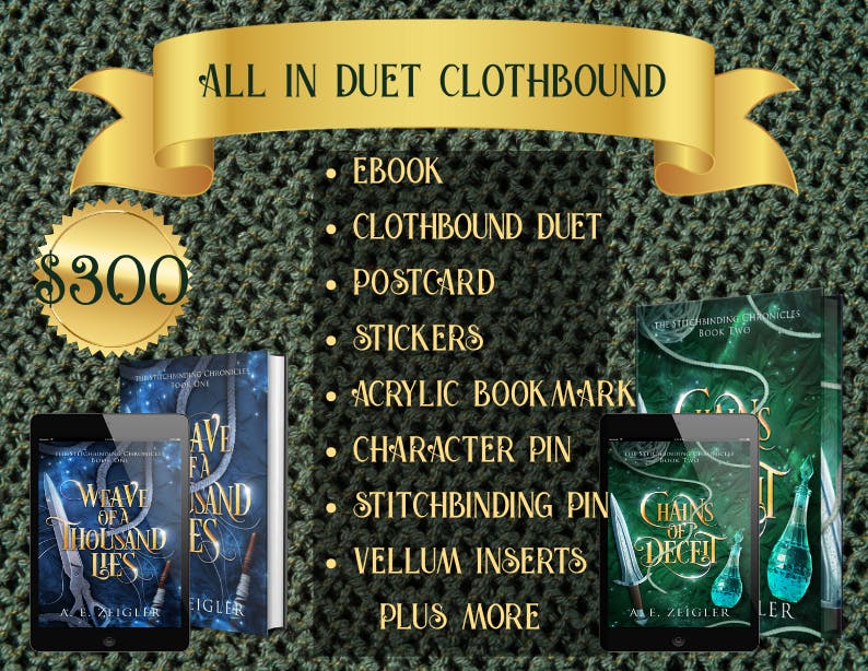 Chains Of Deceit is Book 2 in the Stitchbinding Chronicles. See Book 1 Weave Of A Thousand Lies Backerkit for more about the soft-textile-craft Stitchbinding magic and slow-burn clean romance. Need a copy of Weave Of A Thousand Lies? Never fear! I've got you. See Add-Ons, and the ALL IN rewards for both digital and physical copies.