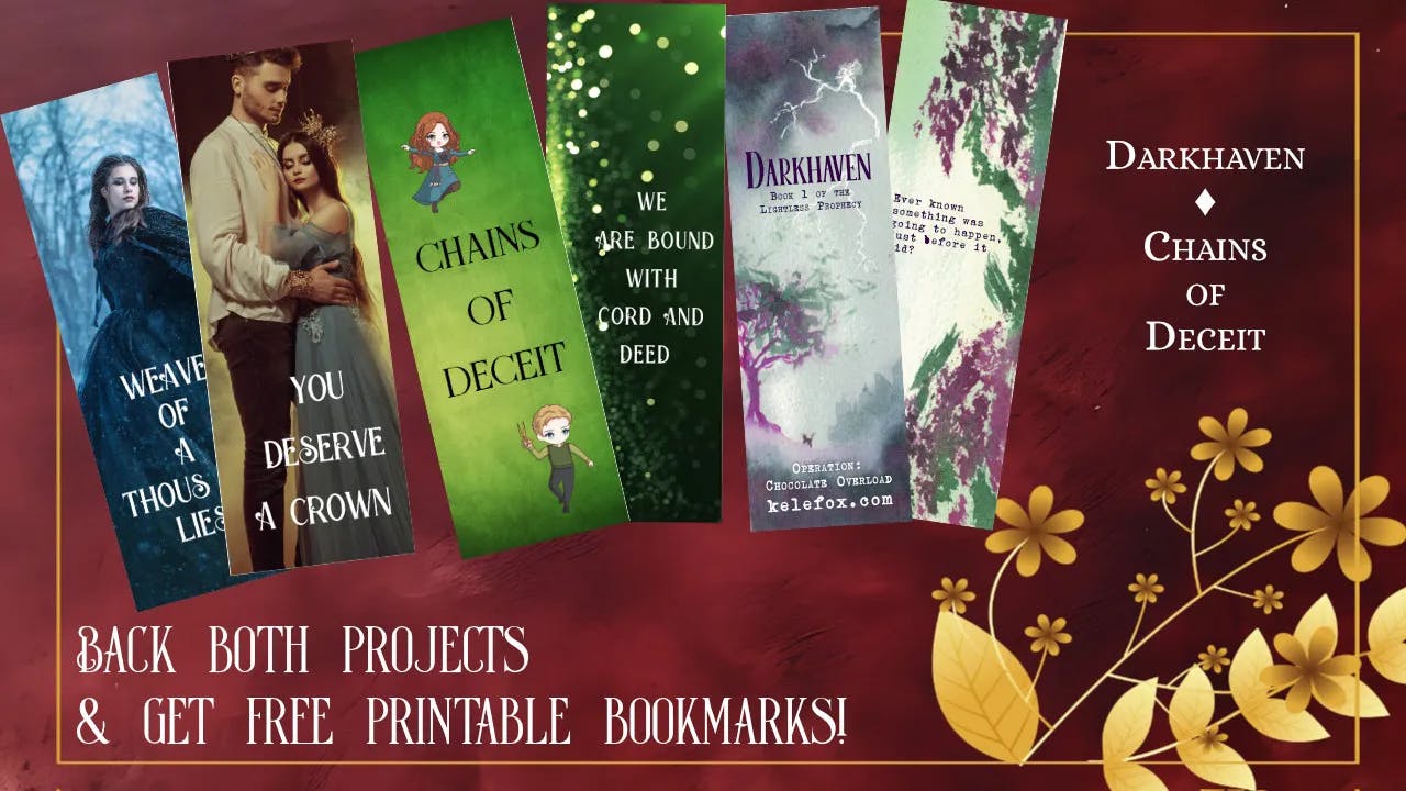 As part of Book Bazaar, I have teamed up with another project (see side bar for Cross-Collaboration project). We will be offering digital bookmarks for any backer who backs BOTH projects at any tier. Images of bookmarks below!