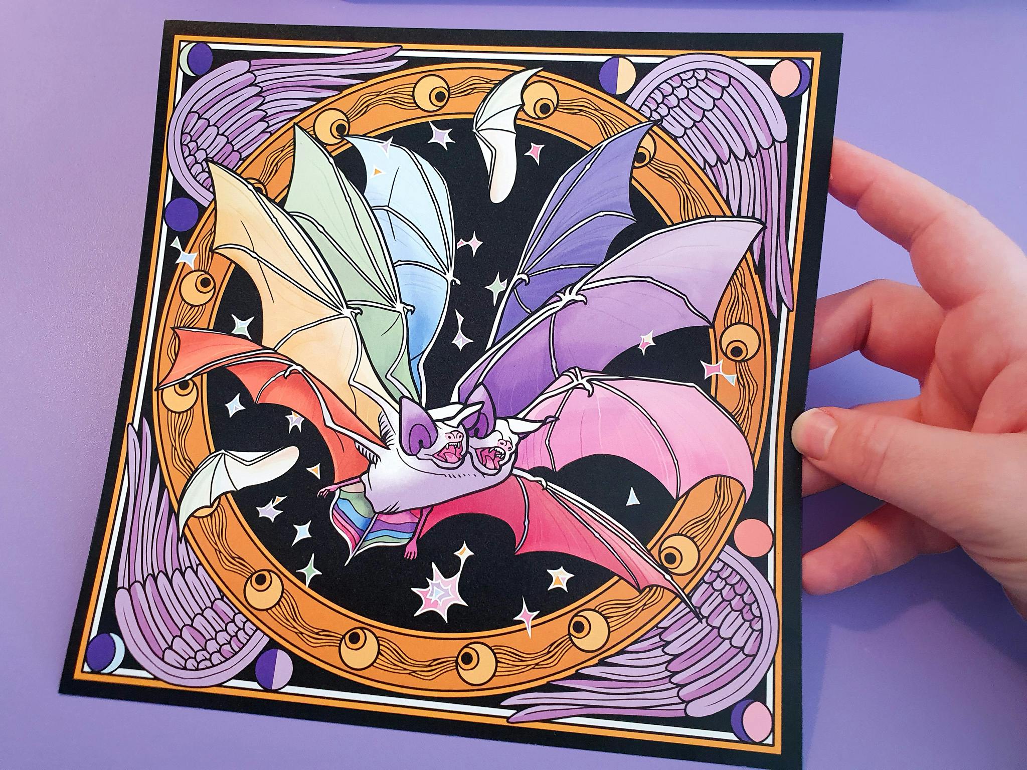 If you'd like to wrap your own gifts in my colourful wrapping paper at home yourself, you can also select a sheet of gift wrap from the Add-Ons list! This will be an A2 size sheet of gift wrap, folded into quarters for shipping. Here's what the full sheet of gift wrap will look like: