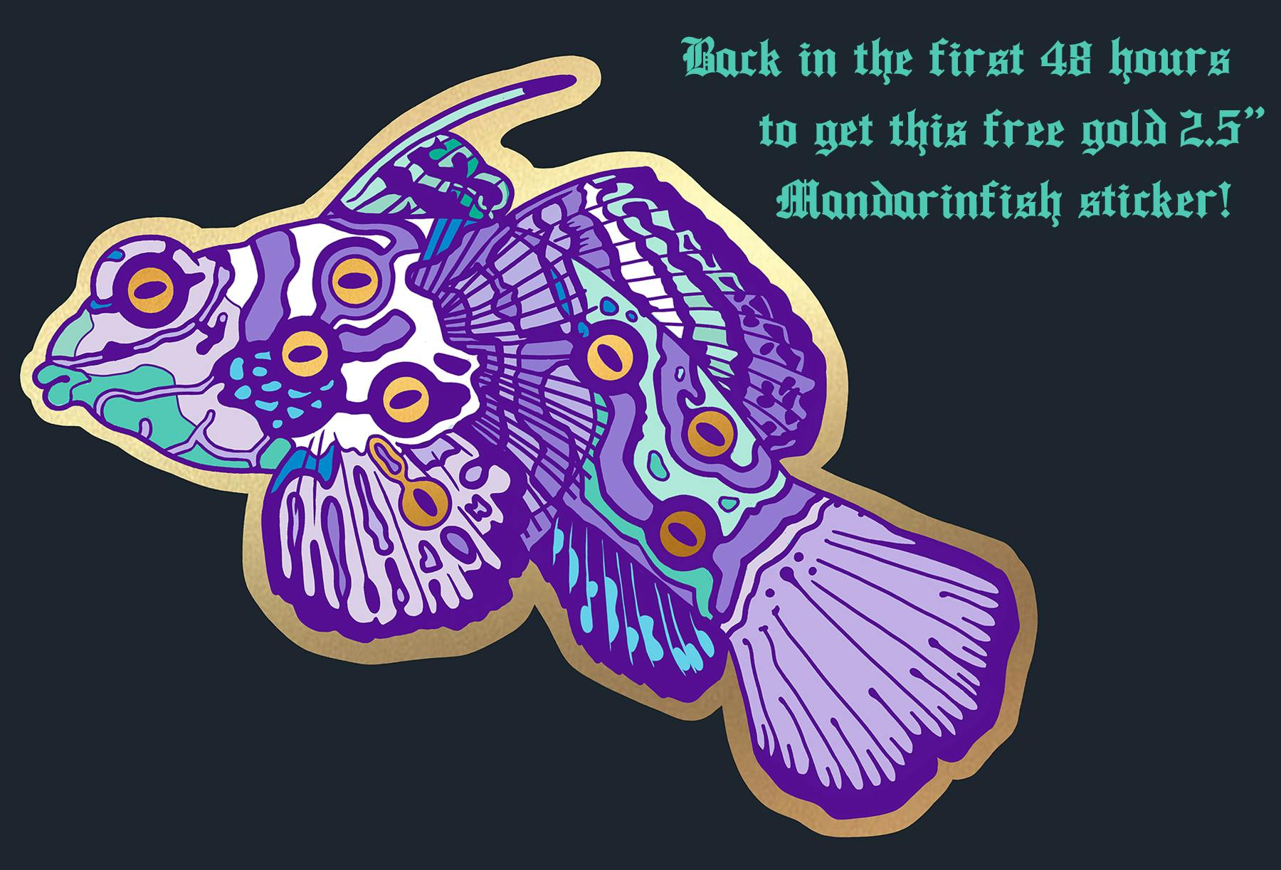 Back this campaign in the first 48 hours and you'll get a free Madarinfish variant sticker with your rewards! The sticker will be 2.5" wide with gold eye effect.