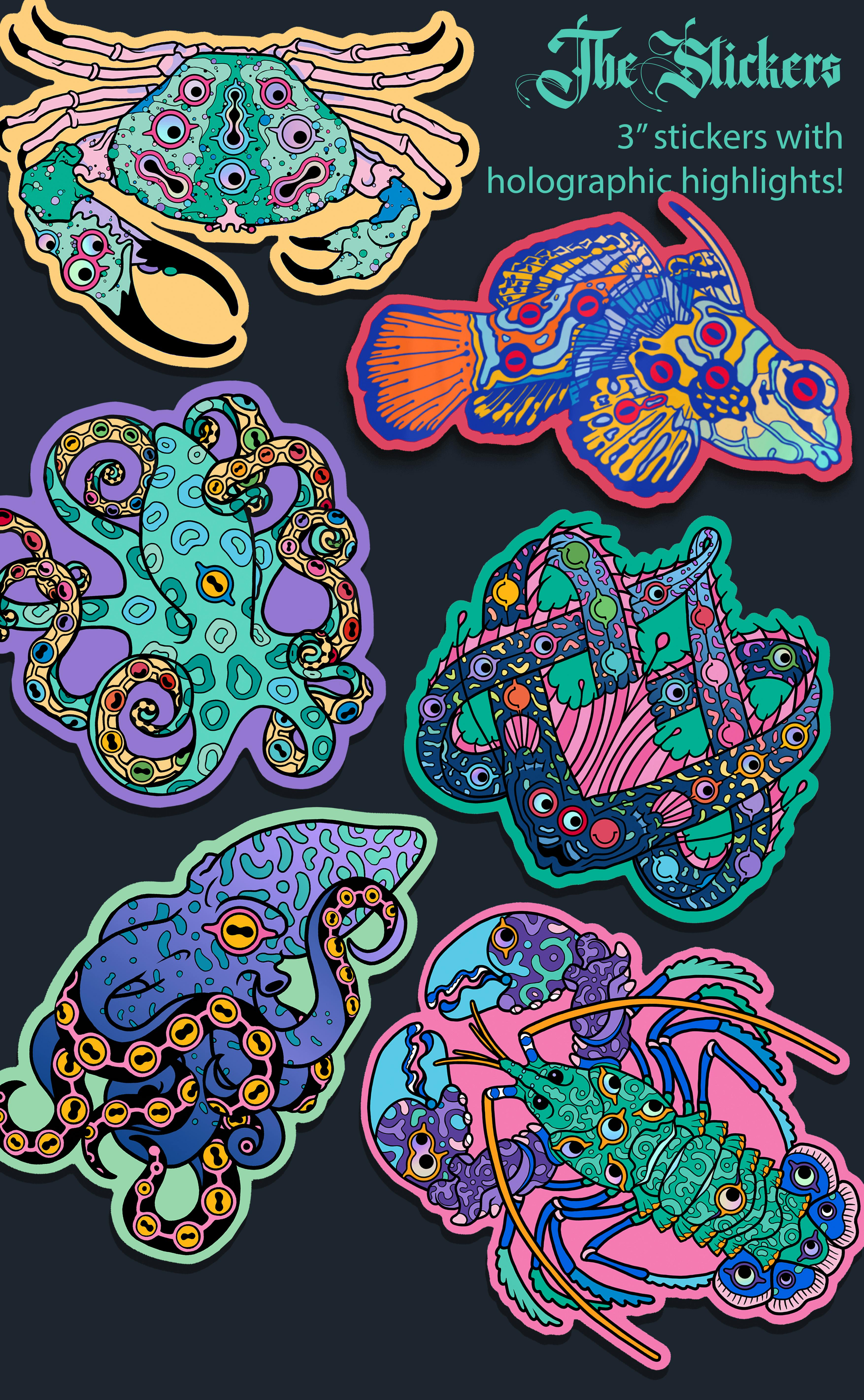 Stickers: All of these stickers will be 3" vinyl with holographic aspects!