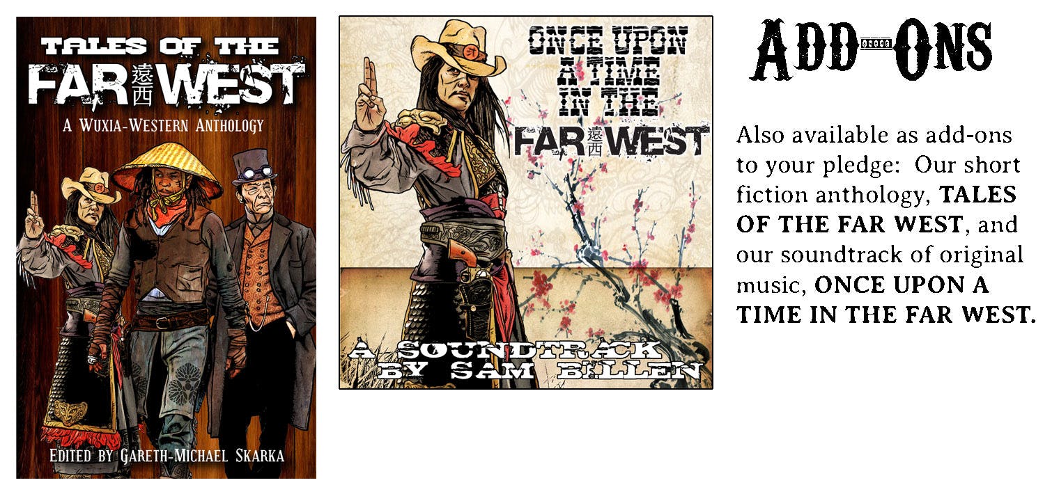 Far West galloped onto Kickstarter with a bold vision in 2011: a mash-up of Spaghetti Western grit, Wuxia elegance, and steampunk flair. A world where six-guns meet secret kung fu scrolls and frontier legends walk the Dust Road.