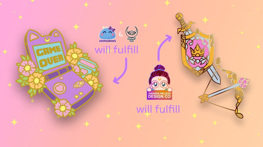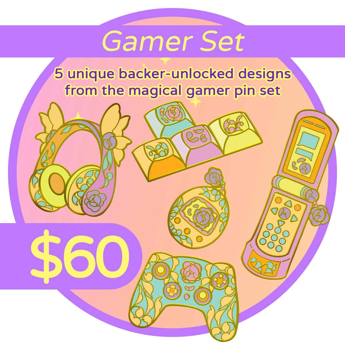 This campaign creates a new collection celebrating the love of all things magical girl with the magic that is gaming. Whether you’re a Twitch streamer, a solo gamer, a co-op player, a console or PC gamer, we love what you do and we’re making these beautiful pins to match your aesthetic and particular style of play.