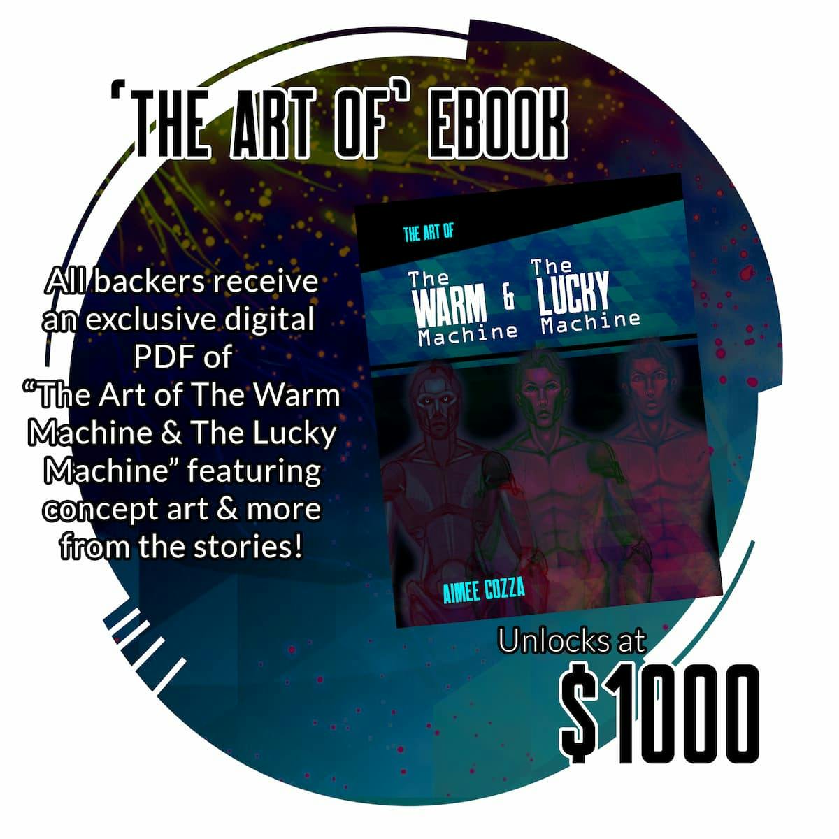 If we reach a funding goal of $1,000, I will include as a digital PDF an ebook of "The Art of" The Warm Machine and The Lucky Machine, which includes all artworks and sketches I've made of the characters and their world.