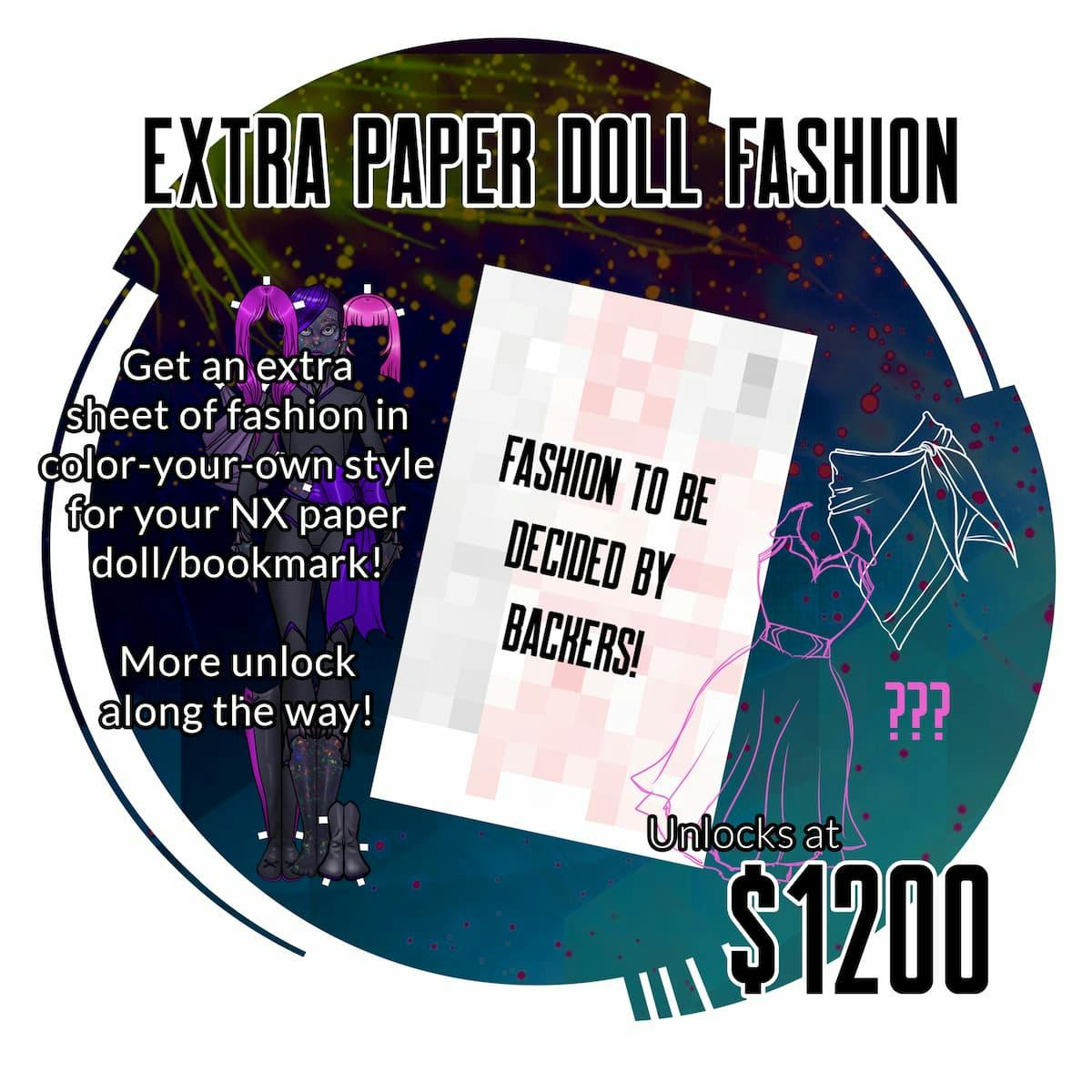 If we reach a funding goal of $1,200, all tiers receiving paper dolls will receive an extra sheet of fashion in a color-your-own style... What kind of fashion is to be determined by the backers, so make sure to back and vote in the polls!