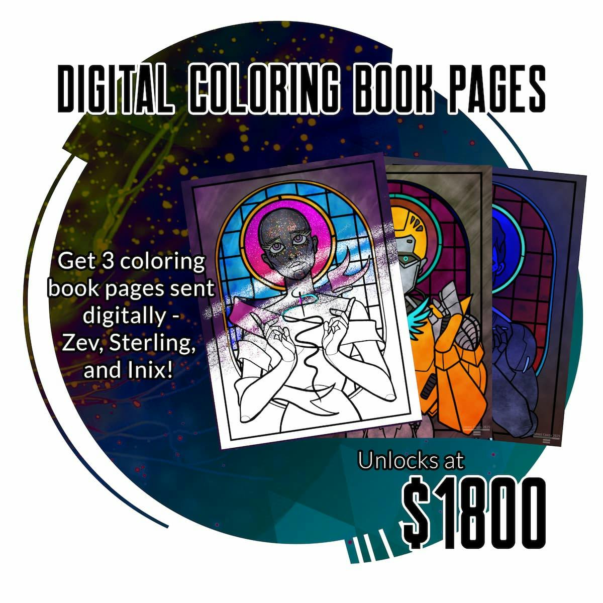 NEW! If we reach a funding goal of $1,800, I'll include digital downloads of coloring book pages of Zev, Sterling, and Inix. All backers on a "get something" tier will receive it (tip-only backers will not) if we unlock this!