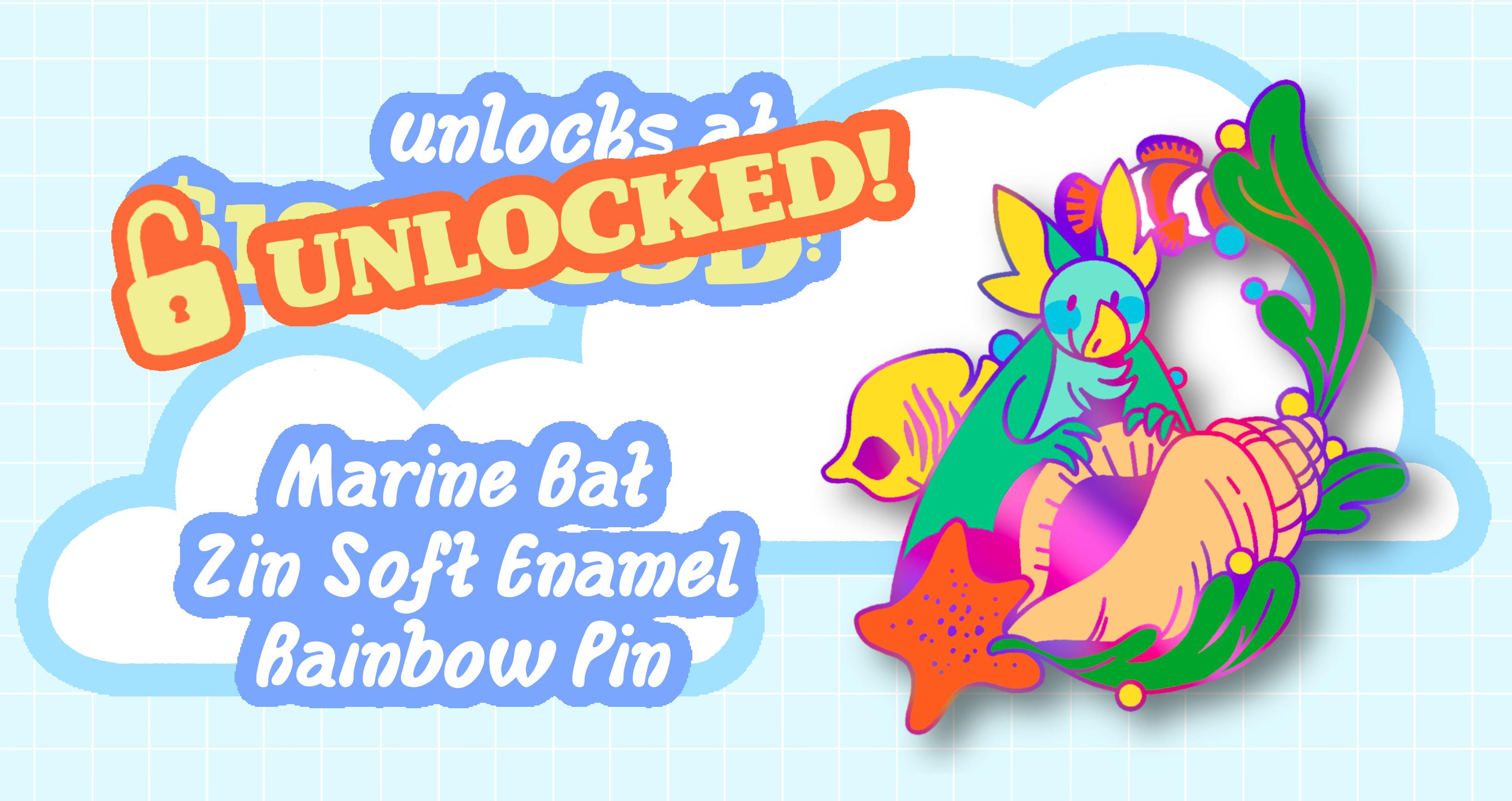 our first unlockable design, available once we reach our initial $1,000 USD funding goal, is this soft enamel pin featuring marine bat from the batpack campaign!
