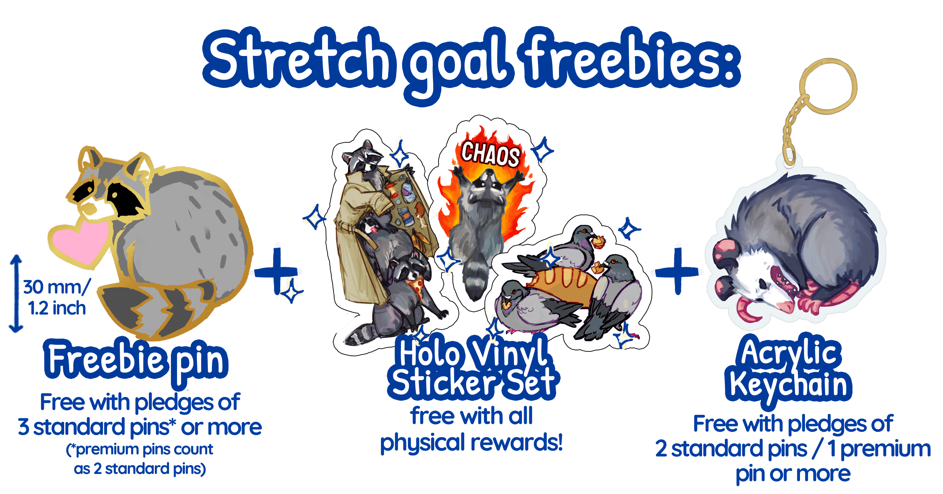 Any backers who have selected physical rewards will receive a vinyl sticker set for free. Backers who have pledged towards 3 or more pins will receive a freebie pin as well!