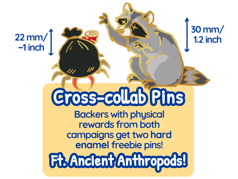 Backing for a physical reward from both Extrashvaganza and Ancient anthropodswill get one free pin from each of us! Click on the graphic to be taken right to the cute crawlies ;D