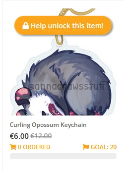 I've added the curling opossum keychain as unlockable add-on, which means that if enough backers add it to their order it will still be made! If not enough people order this add-on, those who added it will be refunded for it :) It's half price from my regular keychains to make sure it still feels like a treat :D