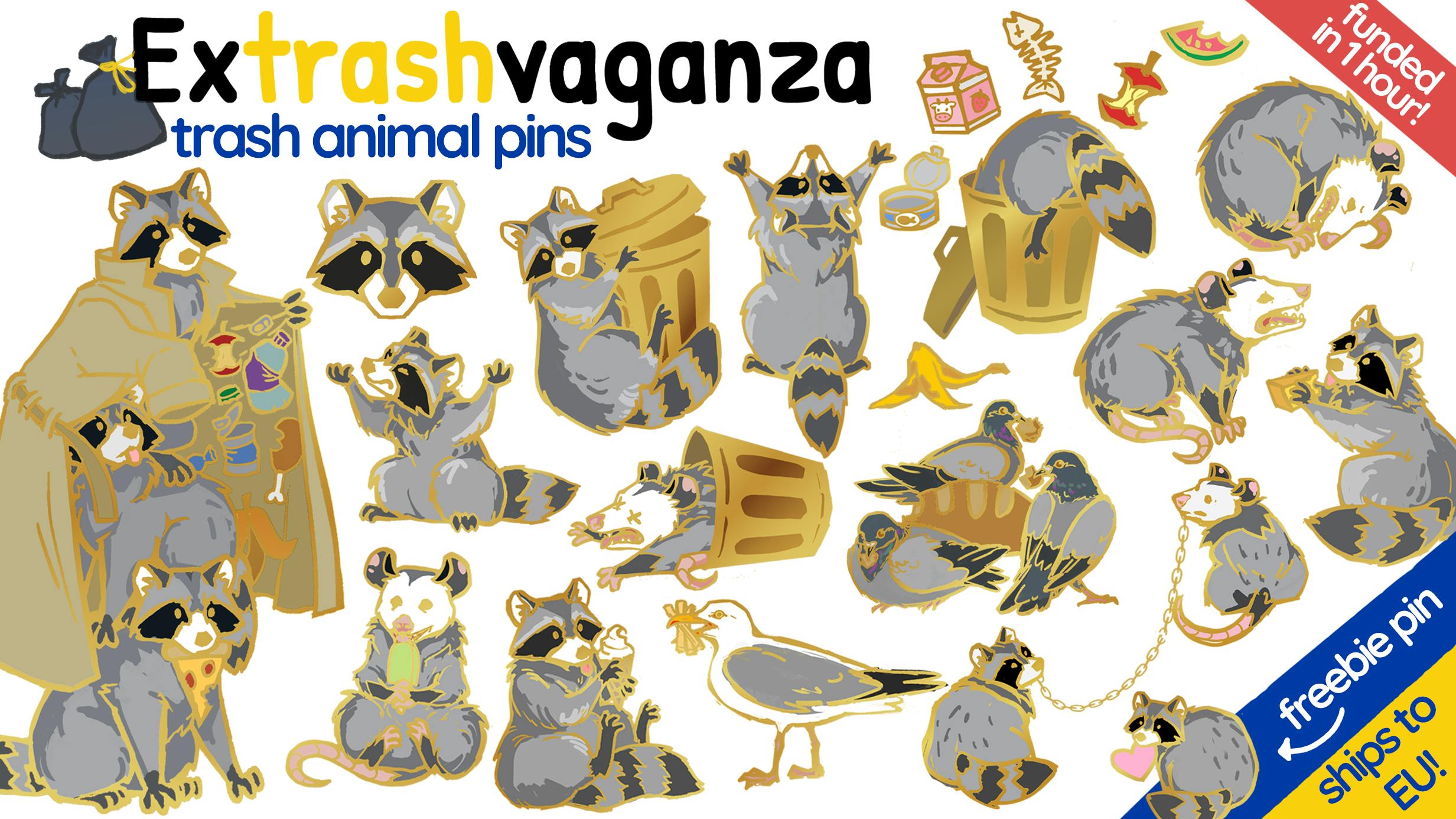 Thank you guys so much for helping make this pin series a reality! I've been blown away by all the support, and really wanted to add a freebie as a final goal instead of a paid option to see if we can get you all some more extras :D If the campaign hits β¬16000 in funds, all pledges for two standard pins / 1 premium pin or more receive a free double sided acrylic keychain with their rewards! I figured a little opossum representation was in order :)