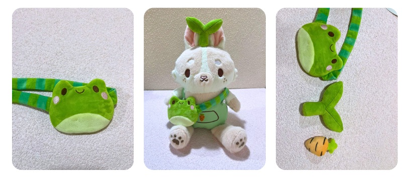 The frog pouch outfit is super cute and I don't really have many issues! It isn't visible in this image, but there is a zipper on the back of the pouch so that it's fully functional as a bag.