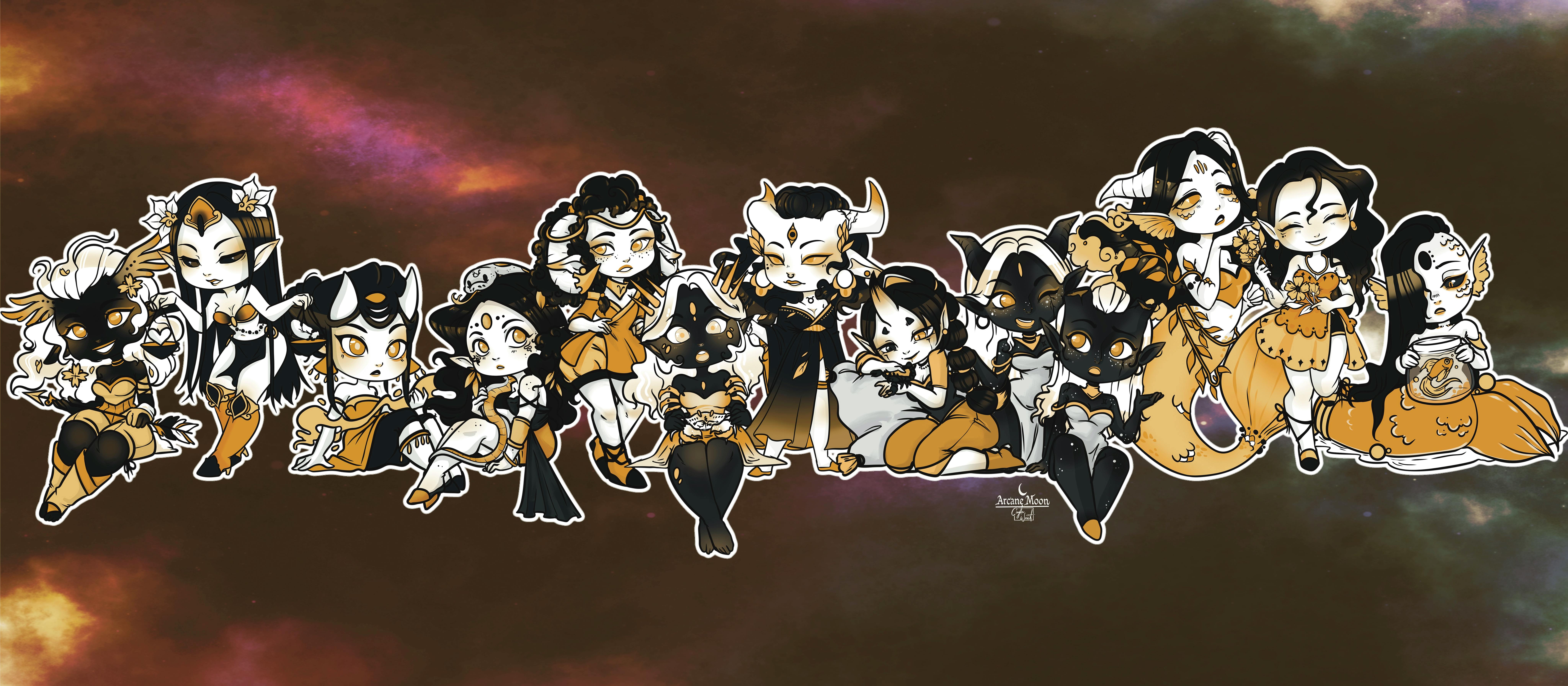 A total reimagining of my Zodiac goddesses from years ago. They will be a set of all the Zodiac signs as unique and mysterious busts. Gold Enamel with black and white as the colors to accentuate their ethereal appearance!