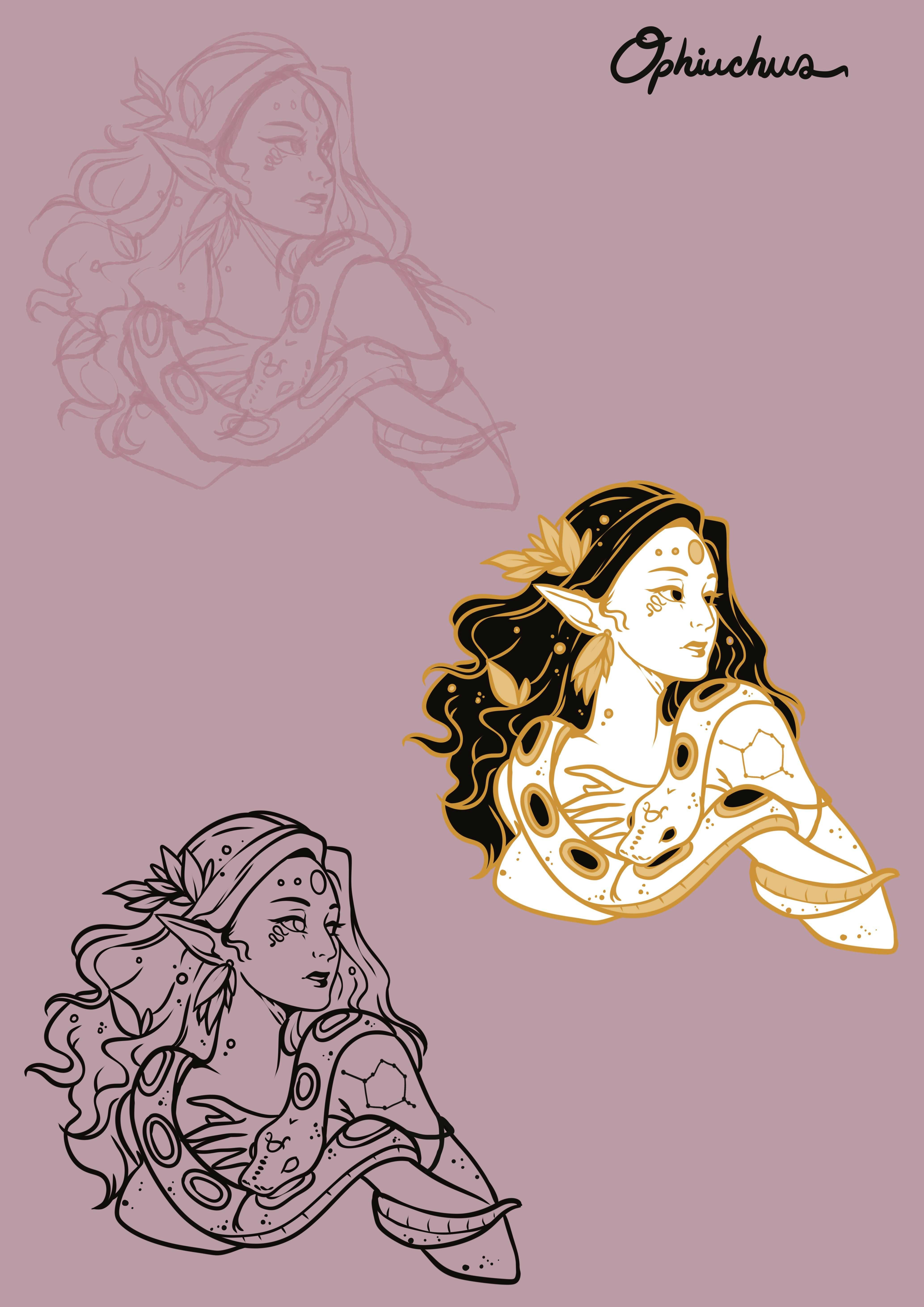 As for the current stretch goals go, I have currently drawn up a design for Ophiuchus by herself, as that was the one that was requested by a few people both here and on other platforms.