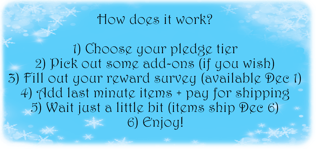 Gift bundles start at just $20 (minimum $35 value!), and are unique to you! During the reward survey phase, you'll have a set of questions to answer. We'll use your answers to generate a ~vibe~ and build a custom gift bundle based on your answers. Each gift bundle is custom built as we're packing it for shipment. If you're buying for someone else in mind, and not yourself, you'll just answer the questions as the recipient instead!