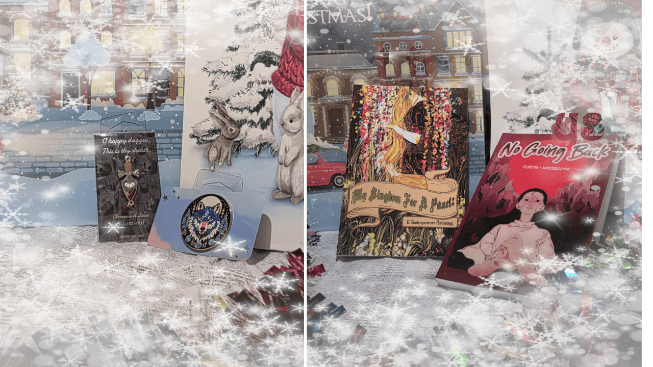 Below are some examples of what gift bundles could contain! Not pictured: stickers, buttons, prints, bookmarks, and other extras that we'll be tossing in!