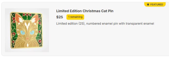 I'm also here with an update on the Limited Edition Christmas Cat pin!