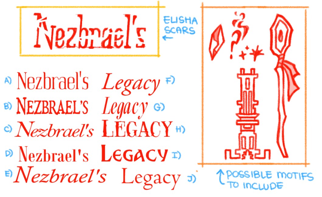 We're currently hard at work putting the finishing touches on the book. Lettering will be post campaign, but there's lots of little bits and bobs that go into making a book ready for publication. Right now, we're working on the title logo!