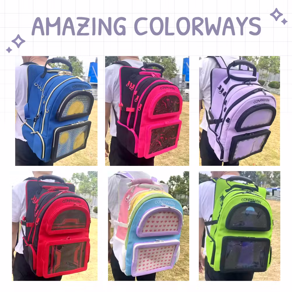 The CONPANION is a multi-functional backpack designed specifically for convention travel! With two clear window compartments, D ring accessories and a built-in print case, the CONPANION is the only companion you'll ever need!