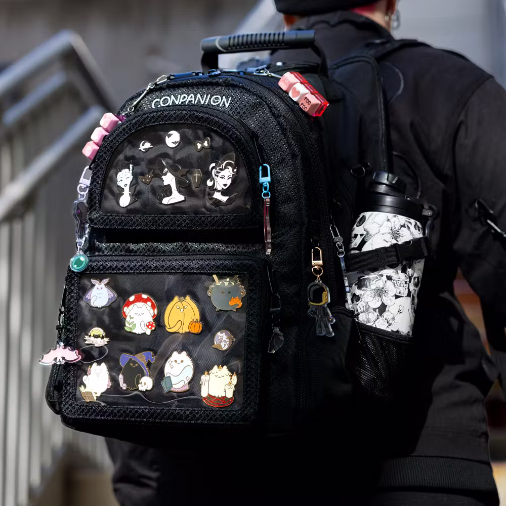 It's more than a backpack! Introducing the coolest, sleekest and most travel-friendly companion to convention attendees and collectors, please welcome The CONPANION! With durable nylon fabric, over a dozen D ring accessories, and two clear windows to display your pin or small trinket collection, this backpack is not kidding around!