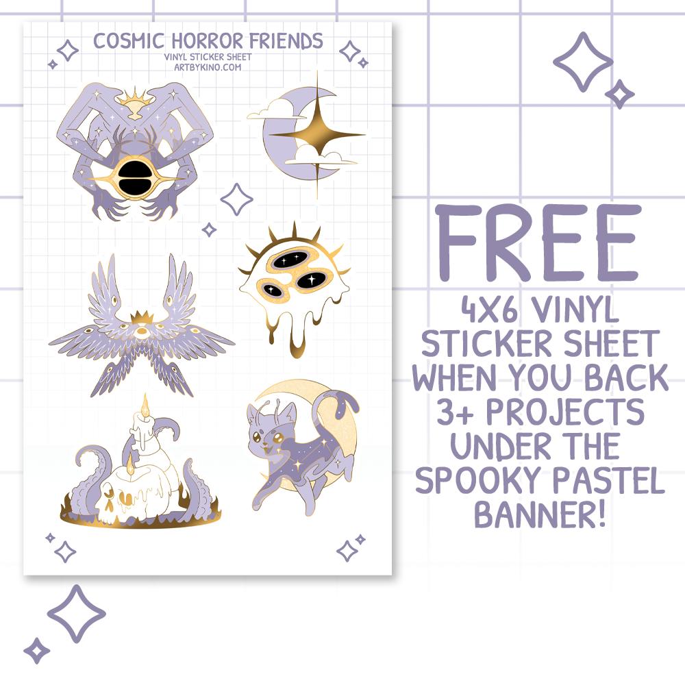 For this year's Pintopia, they've added what are called Banners. A Banner is a subsection of projects that fall under a certain theme, in this case, Spooky Pastel! Back 3+ Spooky Pastel projects and get a FREE sticker sheet from each backed campaign! For example, if you back my campaign and two others under the banner, you'll receive my sticker sheet and those two other sticker sheets as well! Here is a link to the Spooky Pastel projects, and here's my sticker sheet design: