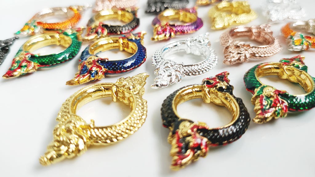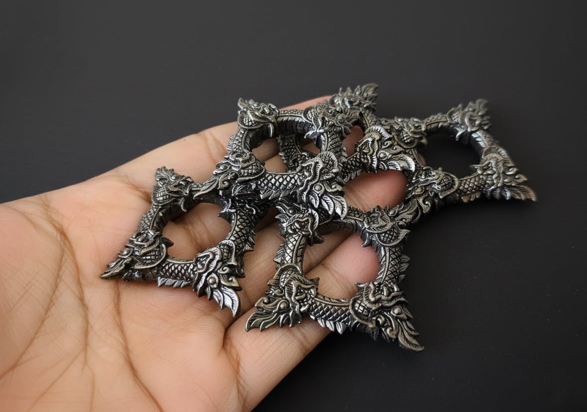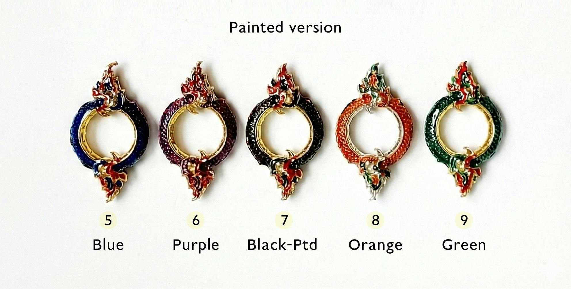 9 Color Options to Match Your Style: ◆ Originals (rhodium-plated shine):** Copper, Silver, Gold, Black. ◆ Hand-Painted Editions (golden base + vibrant pops):** Emerald Green, Obsidian Black, Mystic Purple, Sun Orange, Sapphire Blue. ✪ Mix 'em for your squad or daily rotation—like green for game night energy or purple for that subtle mystic edge.✪
