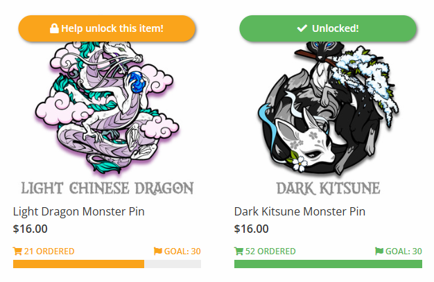 Also, I know a few people were concerned about the Light Dragon not unlocking. Thankfully, due to the overwhelming support for the Dark Kitsune, I can use a portion to fund the remaining cost of the Light Dragon. So we'll be keeping both!