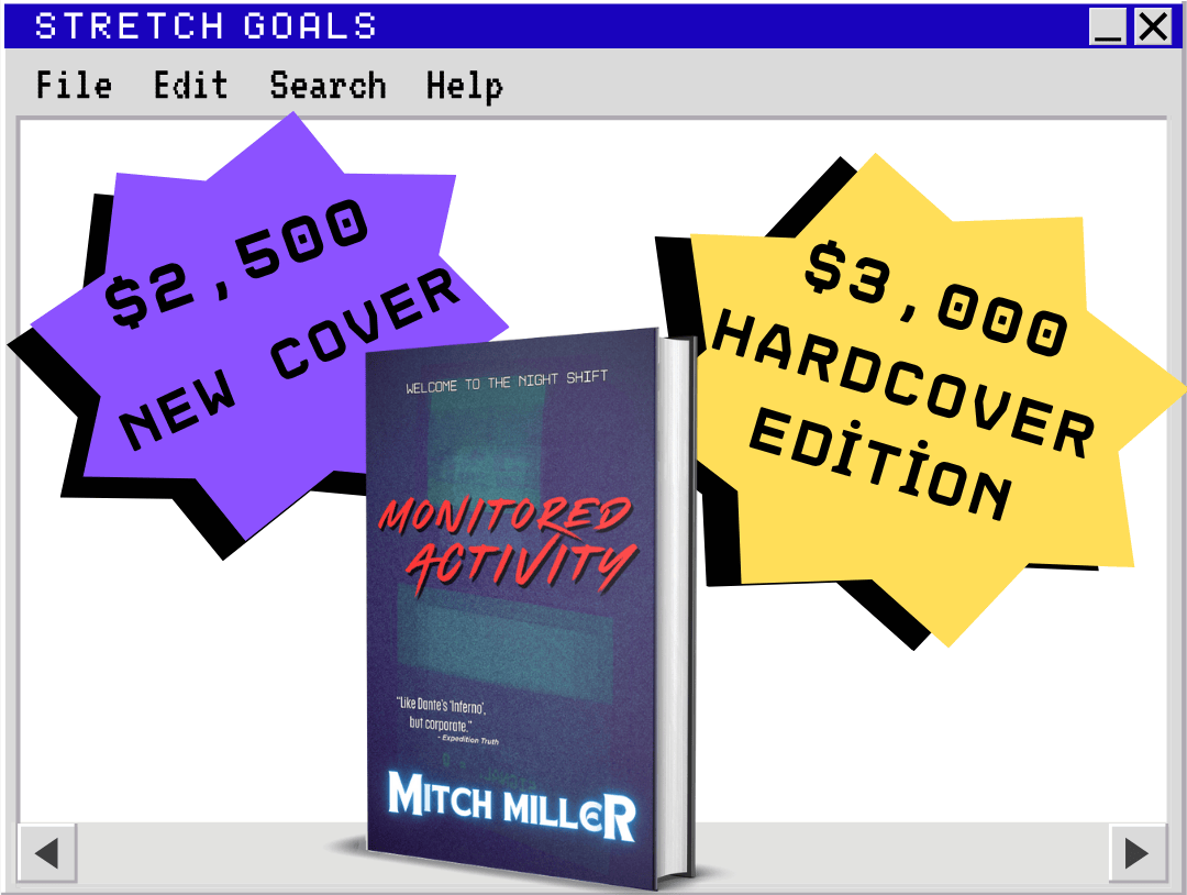 Timeline wise, Monitored Activity is currently in its third draft. If funded, this draft will pass on to a copy editor, then back to me for one more pass before entering the proofreading stage. We expect to begin the process in January and estimate the manuscript's completion between May and June. During that time, any non-book goodies will go into production ASAP, with the hope that all physical rewards arrive around the same time.