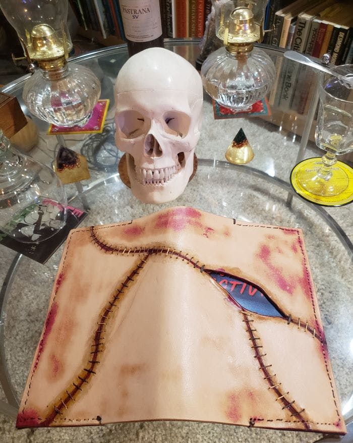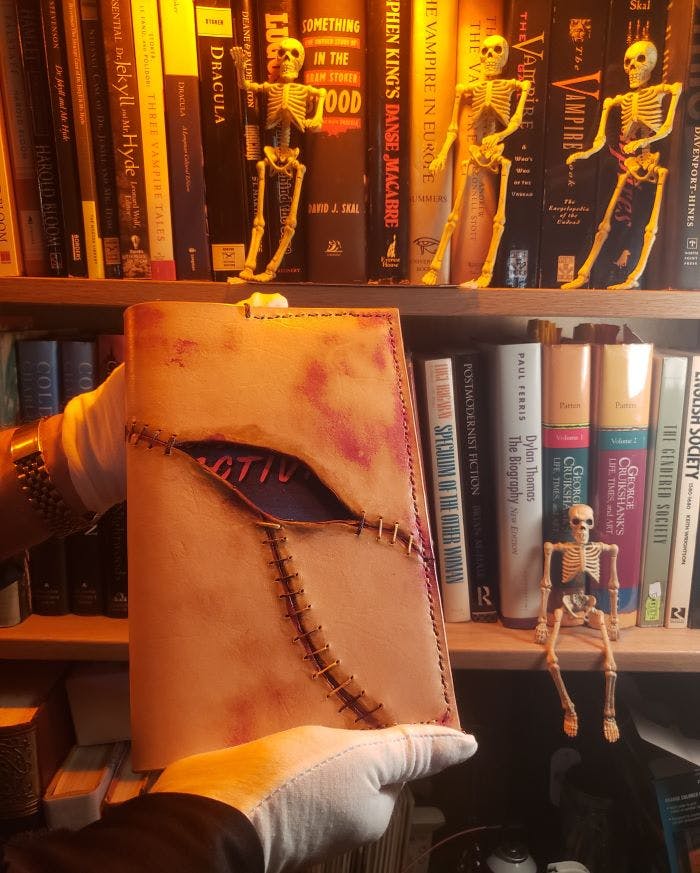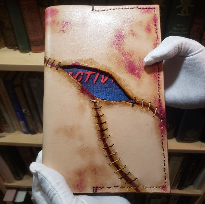 The perfect fit for any fan of the macabre, this bundle includes a handmade leather dust jacket tailored to a hardcover 5.5" x 8.5" copy of Monitored Activity.