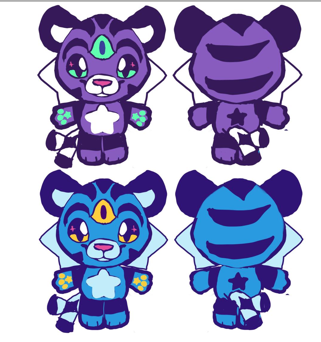 If an larger plush of Milky way is made in the future will have a swirl on the back and stars on the face, so those features will still remain on the pin but the legs will have the mismatched appearance.