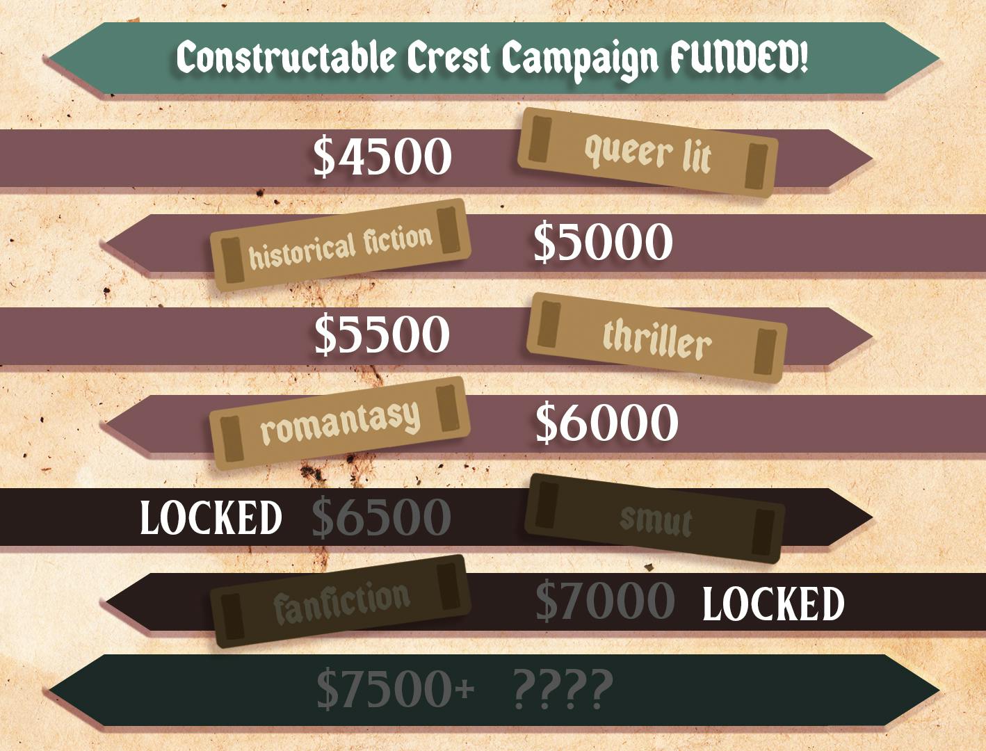 We're down to the final two stretch goals: Smut and Fanfiction! In fact, we're only $75 away from the Smut banner bar... spread the word to your smut connoisseurs!
