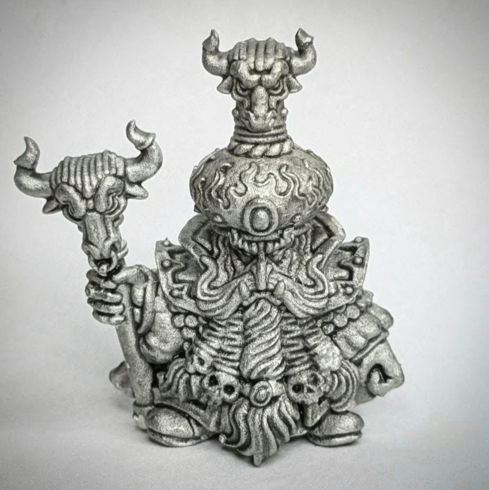 The sorcerer on our pre-launch page? That’s a master copy of a Fabelzel original! Here he is, in his full-bodied glory. Cast, ready, and waiting to make his semi-permanent imprint on a production-grade mold.
