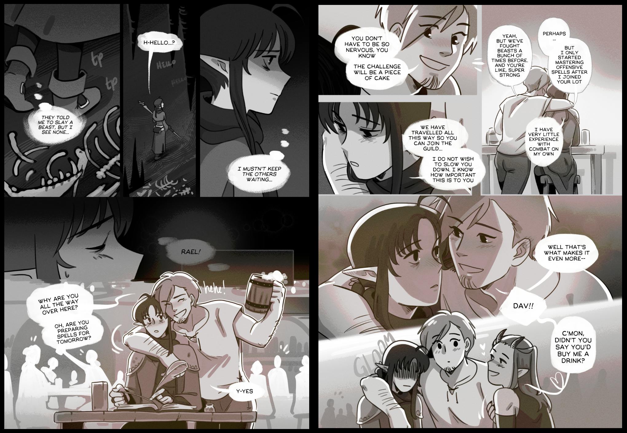 Rael is a sheepish wizard who closely guards his infatuation with Dav, the party's handsome and flirtatious archer. During their mission to hunt a deadly beast, Rael is cornered by a monster with an enticing offer.