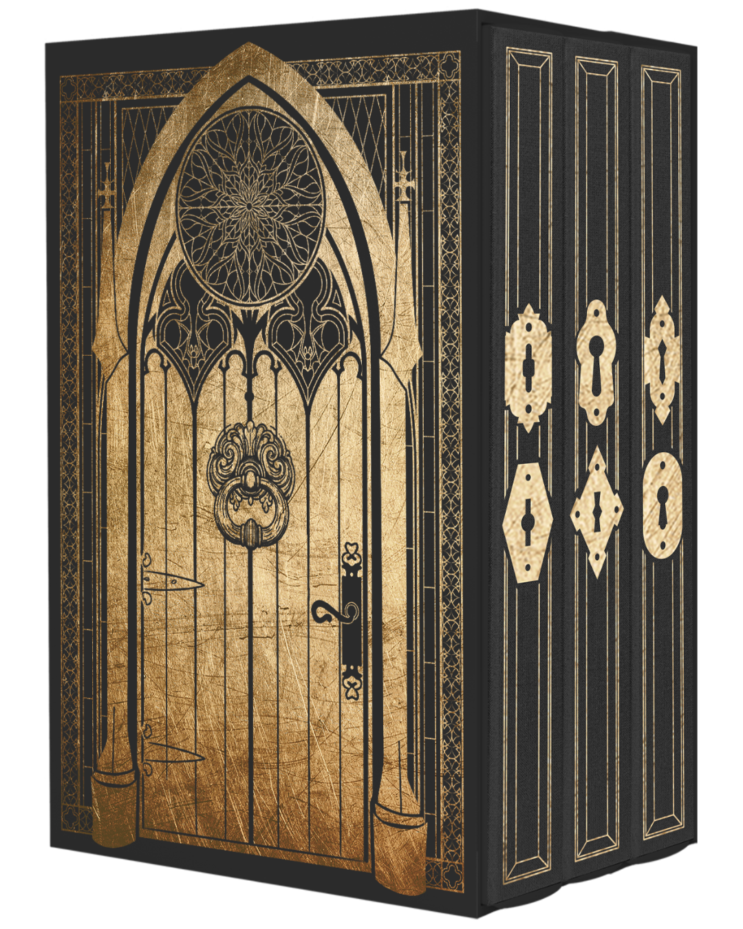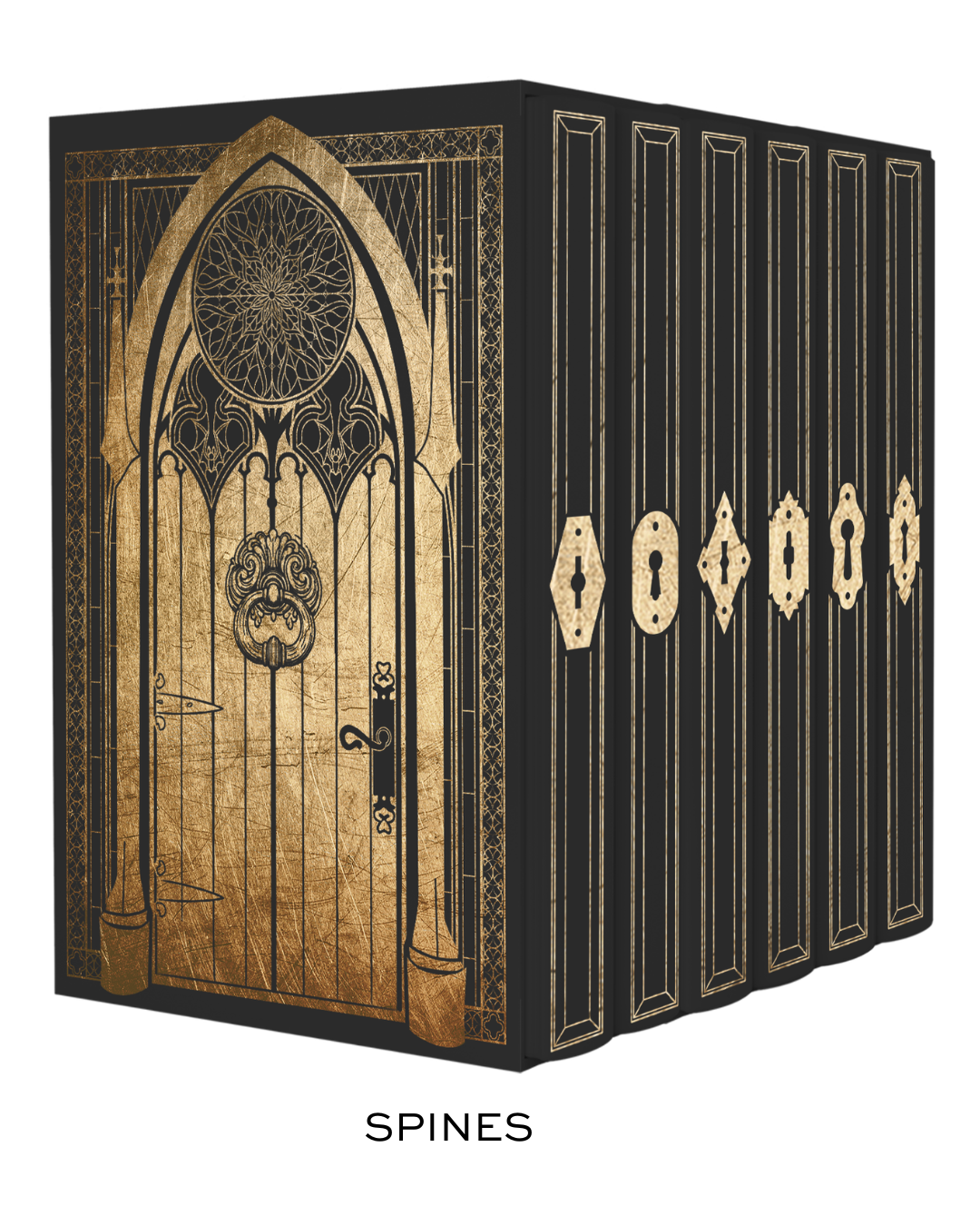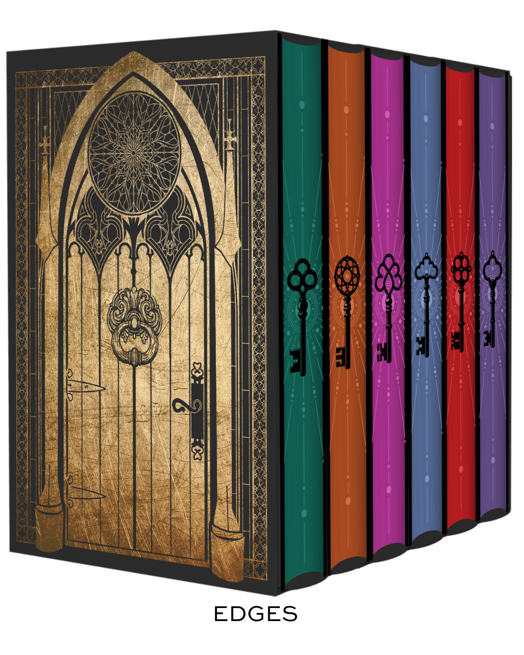 The hardcover set will come in a luxurious foiled slipcase. Each of the six books will have sprayed edges featuring a key, and spine design featuring a keyhole. Each book will have stunning full-color endpage art to match the cover art by Finn Frei.