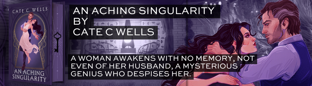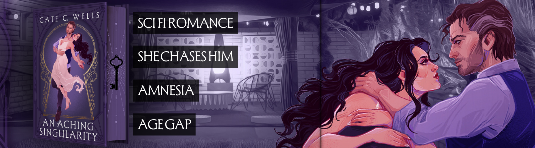 An Aching Singularity by Cate C. Wells. SciFi Romance. She chases him. Amnesia. Age gap.