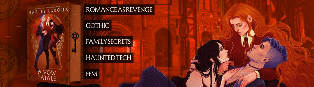A Vow Fatale by Harley LaRoux. Romance as revenge. Gothic. Family secrets. Haunted tech. FFM.