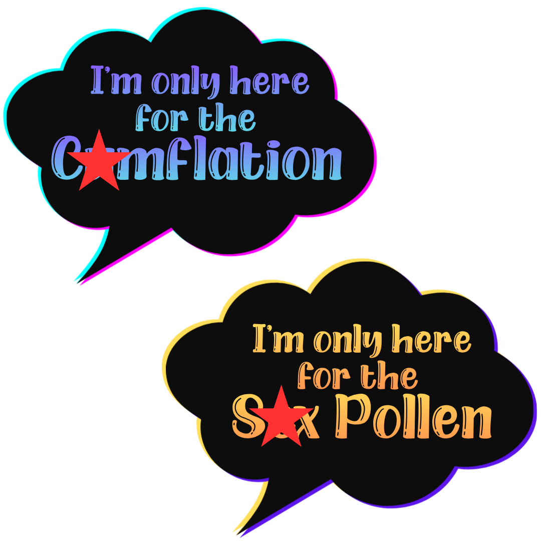 Patreon exclusive stickers. "I'm only here for the c*mflation" and "I'm only here for the s*x pollen." Final designs will not be censored.