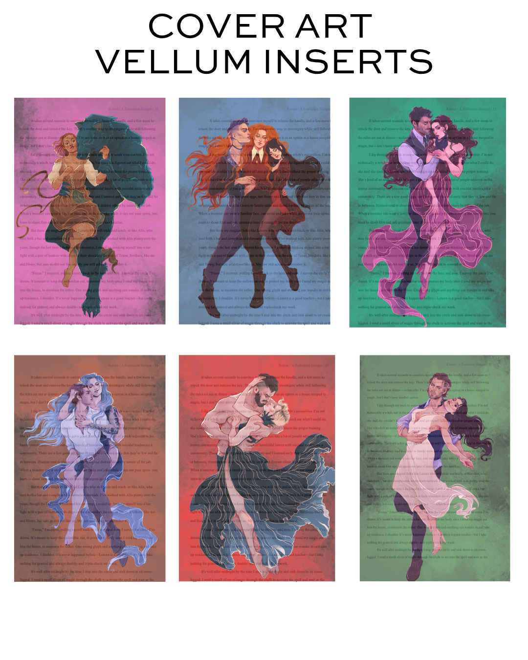 We are once again bringing the spiciest vellum inserts from our amazing artist, Sara Bertoli! These are semi-transparent and designed to slip right into your book...or in the book nook! (Art will not be censored in the final product)
