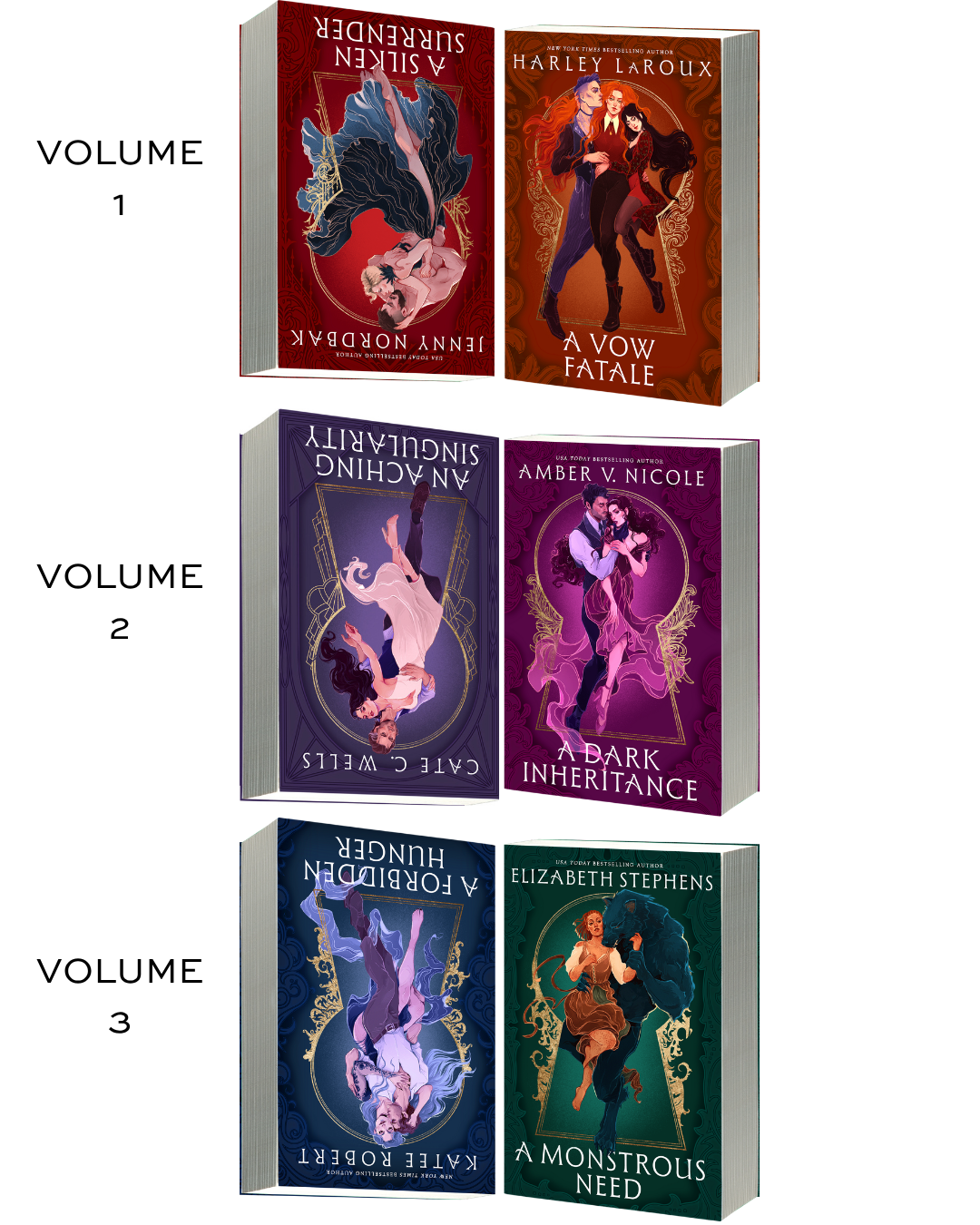 Six dark, decadent, dangerously addictive romances—each a completely different descent into desire. Once you indulge your curiosity… there’s no going back. The only question is which door will you open first?
